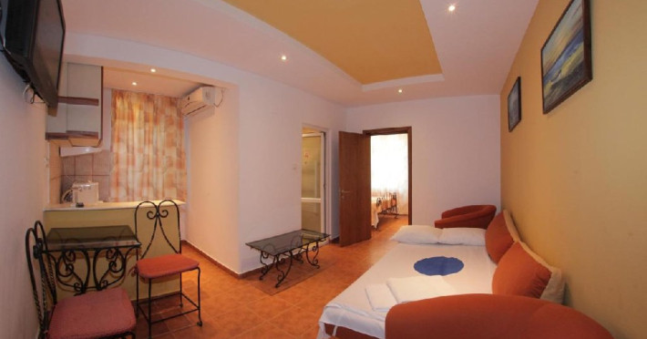 Cele 8 apartamente existente se compun din dormitor, living si baie, minibucatarie, avand la dispozitie Tv Lcd in dormitor, iar in living: Tv Lcd, aer conditionat, canapea extensibila, frigider, cuptor cu microunde, vesela in bucatarie.