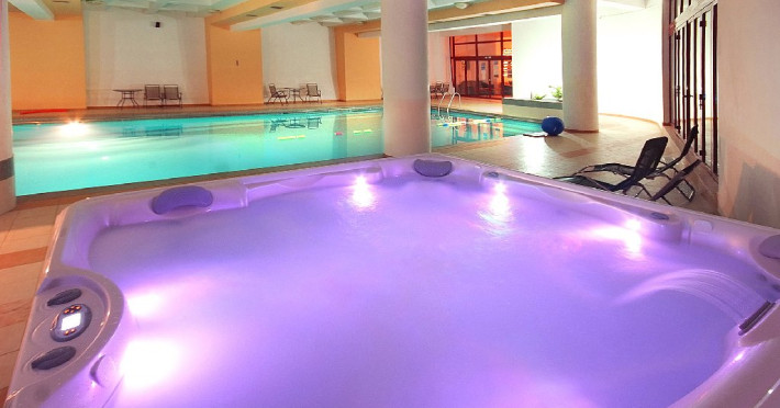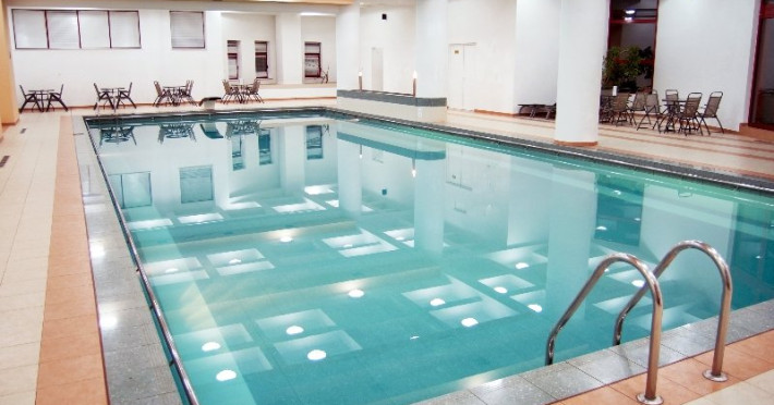 Complexul dispune de cea mai mare piscina acoperita din statunea Slanic Moldova. Apa este mentinuta la temperatura de 30 grade C iar temperatura ambientala la 30 grade C. Piscina este de dimensiuni semiolimpice, avand lungimea de 21 m si latimea de 9 m. Adancimea acesteia porneste de la 1.60 m si ajunge la 3.20 m. Accesul la piscina este gratuit. Vara se deschide si terasa pentru plaja putand astfel admira peisajul montan direct din piscina.