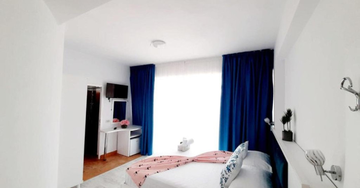 Camerele duble au in dotare un pat mare matrimonial King size de 160/200, au suprafata de 24 Mp si au in dotare: TV, aer conditionat, internet wireless, balcon spatios cu panorama superba atat la lac cat si la mare, frigider minibar, baie proprie moderna, uscator de par.
