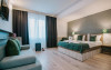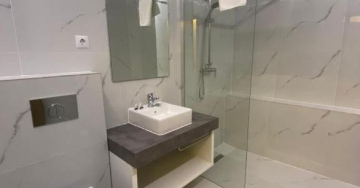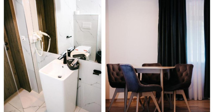 Apartament Queen: pat matrimonial, canapea extensibila, baie cu dus, papuci de casa, uscator de par, televiziune prin cablu/satelit, frigider, garderoba, birou, balcon. Apartamentele au si fierbator de apa si automat de cafea. (Suprafata: 20mp)