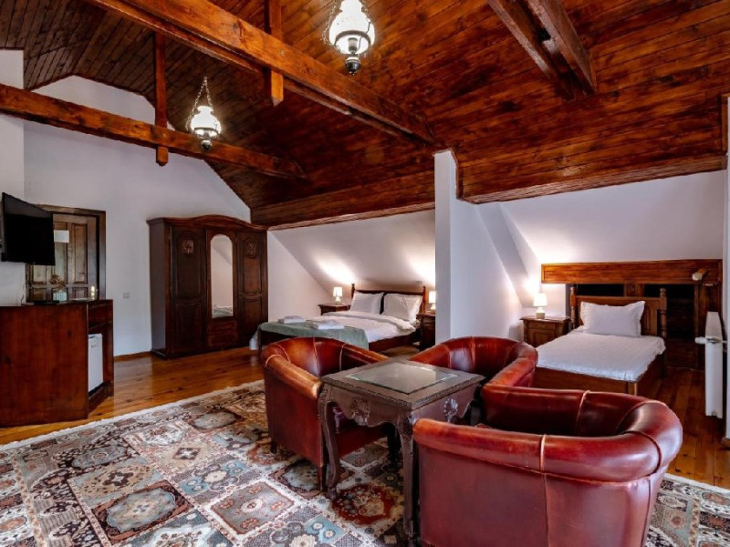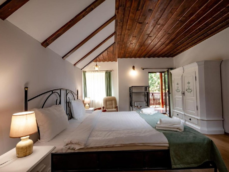 Puteti servi specialitati romanesti la bar, care are mobilier din lemn sculptat, podele din lemn masiv si decoratiuni rustice. Micul dejun este tip bufet.