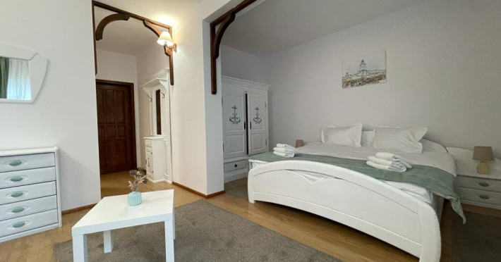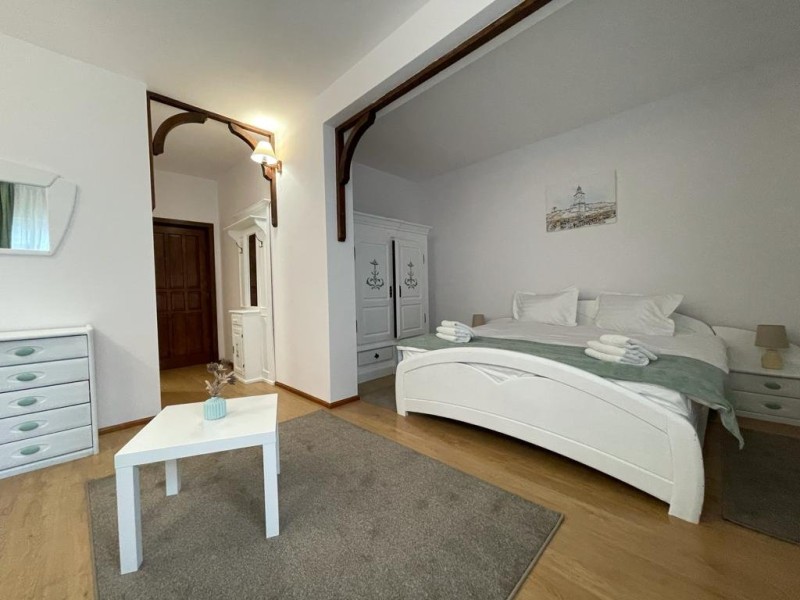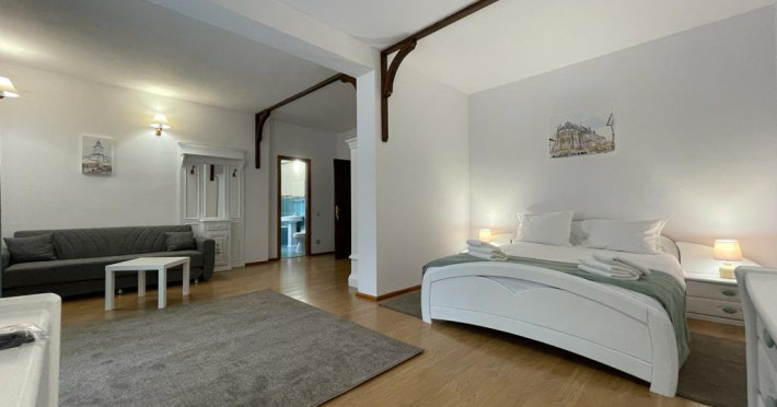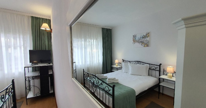Apartamentul are suprafata de 45 mp si este compus dintr-un dormitor cu pat matrimonial si living cu canapea extensibila.