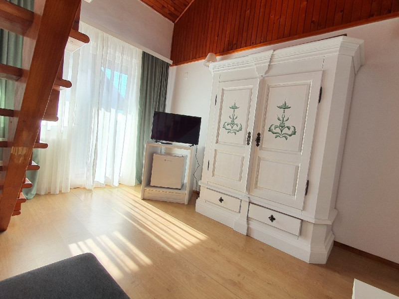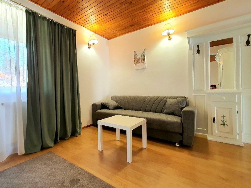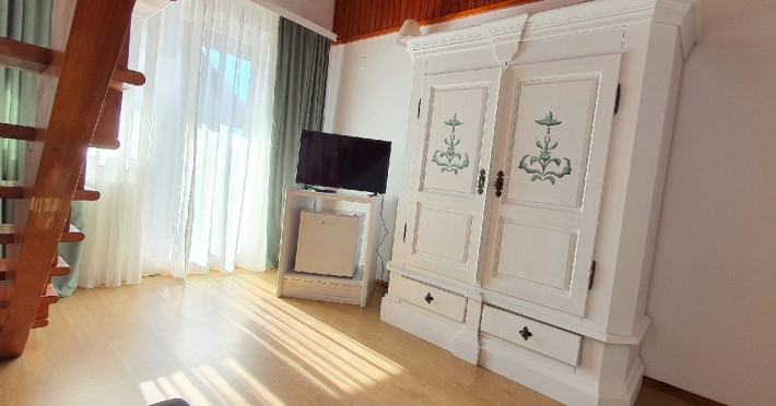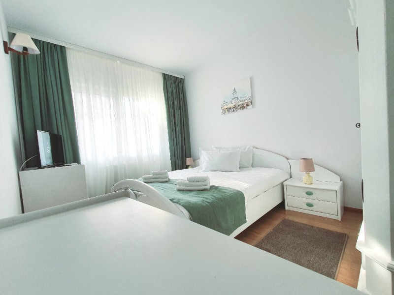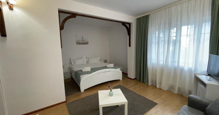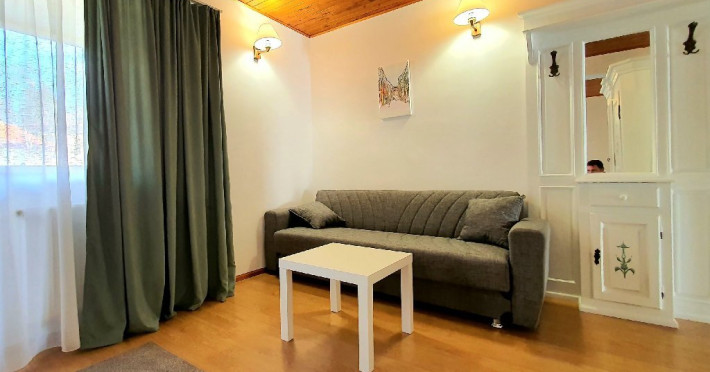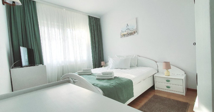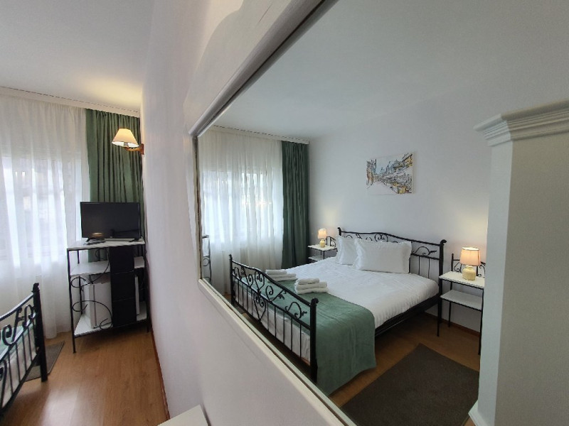 Apartamentul are suprafata de 45 mp si este compus dintr-un dormitor cu pat matrimonial si living cu canapea extensibila.