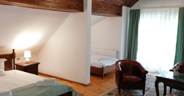 Camera Dubla Family cu suprafata de 22 mp sunt ideale pentru familiile cu copii, acestea fiind dotate cu pat matrimonial si canapea extensibila. Unele camere dispun si de balcon.