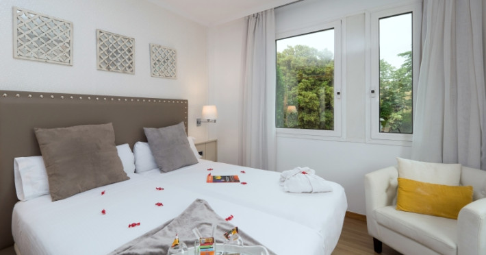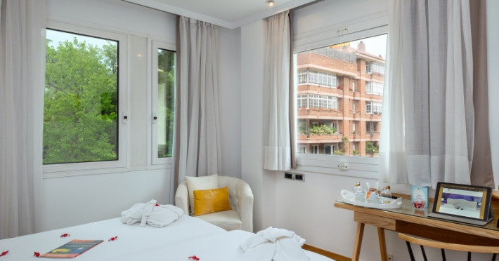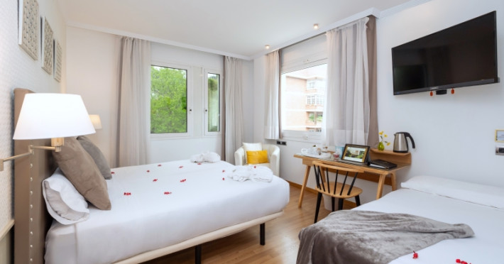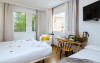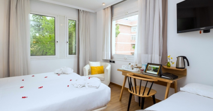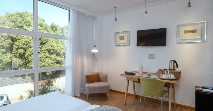 The hotel HOTEL VILANA is located approx. 6,5 km from a beach. The city centre is around 4,4 km away. The air-conditioned hotel has a lobby bar, Wi-Fi, a lift, parking spaces (for a fee) as well as a TV lounge. Furthermore, you can relax outdoors on a terrace. You can store your luggage in the hotel's storage room. For your clothes there is a laundry and ironing service. If necessary, you can contact the medical centre (for a fee). For conventions and other business meetings, the hotel offers a conference area with fax. If you want to explore the holiday region, you can use the car rental service close to the hotel. Smoking is permitted in the hotel. Due to its barrier-free facilities , such as barrier-free entrances, the hotel is also suitable for wheelchair users. Catering Breakfast is offered from the buffet. In the gastronomic area also vegetarian and gluten-free dishes are served. Distances- Airport: approx. 15,7 km