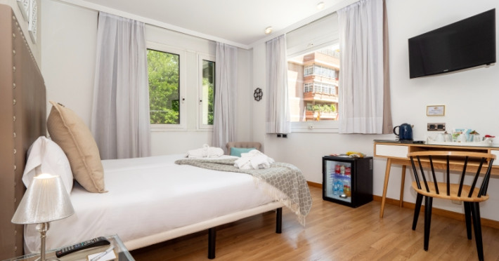 The hotel HOTEL VILANA is located approx. 6,5 km from a beach. The city centre is around 4,4 km away. The air-conditioned hotel has a lobby bar, Wi-Fi, a lift, parking spaces (for a fee) as well as a TV lounge. Furthermore, you can relax outdoors on a terrace. You can store your luggage in the hotel's storage room. For your clothes there is a laundry and ironing service. If necessary, you can contact the medical centre (for a fee). For conventions and other business meetings, the hotel offers a conference area with fax. If you want to explore the holiday region, you can use the car rental service close to the hotel. Smoking is permitted in the hotel. Due to its barrier-free facilities , such as barrier-free entrances, the hotel is also suitable for wheelchair users. Catering Breakfast is offered from the buffet. In the gastronomic area also vegetarian and gluten-free dishes are served. Distances