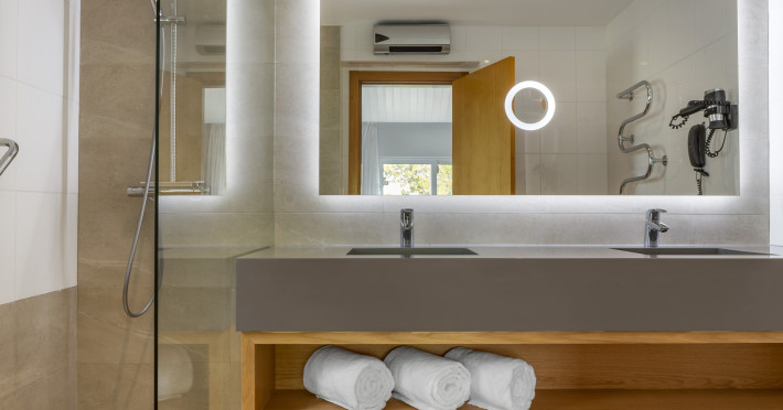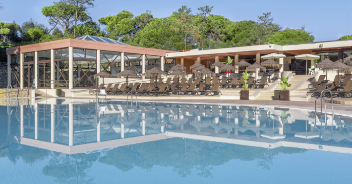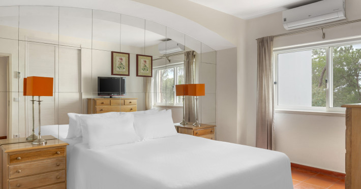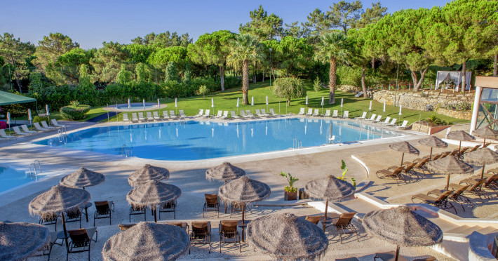 The hotel Vilar Do Golf is located approximately 3,2 km from a beach. The city centre is around 6 km away. The nearest shops you can reach within around 3 km. There is a shuttle between the hotel and the airport (for a fee). To reach the beach a shuttle (for a fee) is provided. The GPS-verified hotel has a 24h reception (check-in is possible around the clock), a lobby, Wi-Fi, internet access, cash machine, a jacuzzi, a first aid kit, parking spaces as well as a TV lounge with satellite TV. Outside there is a children's pool, where sun loungers, sun umbrellas and pool towels are available for free. Furthermore, you can relax outdoors in the garden. Inside the hotel you can use a heated indoor pool. You can store your valuables in the safe, and your luggage in the hotel`s storage room. In addition, the hotel Vilar Do Golf is video-monitored 24h a day. For the young hotel guests there is a playground. For very young guests, kid`s chairs can also be provided. There is also a laundry service available at an additional cost to customers as well as an ironing service. If necessary, you can contact the medical centre. For conventions and other business meetings, the hotel offers a conference area with printer as well as internet access. If you want to explore the holiday region, you can use the car rental service close to the hotel. At the reception, tickets are offered for excursions in the area. In your hotel, a lot of focus is placed on sustainability. This includes waste segregation in the rooms and the hotel`s own recycling bins. That is why the hotel Vilar Do Golf was also awarded a sustainability certificate. The hotel requires that all guests pay a deposit upon arrival. American Express, Euro/Master Card and Visa are accepted as means of payment. Catering Breakfast is offered à la carte. For the meals, there are a restaurant with terrace (Italian dishes) and the cafeteria as well as the pool bar. Distances- Airport: approximately at 18 km
