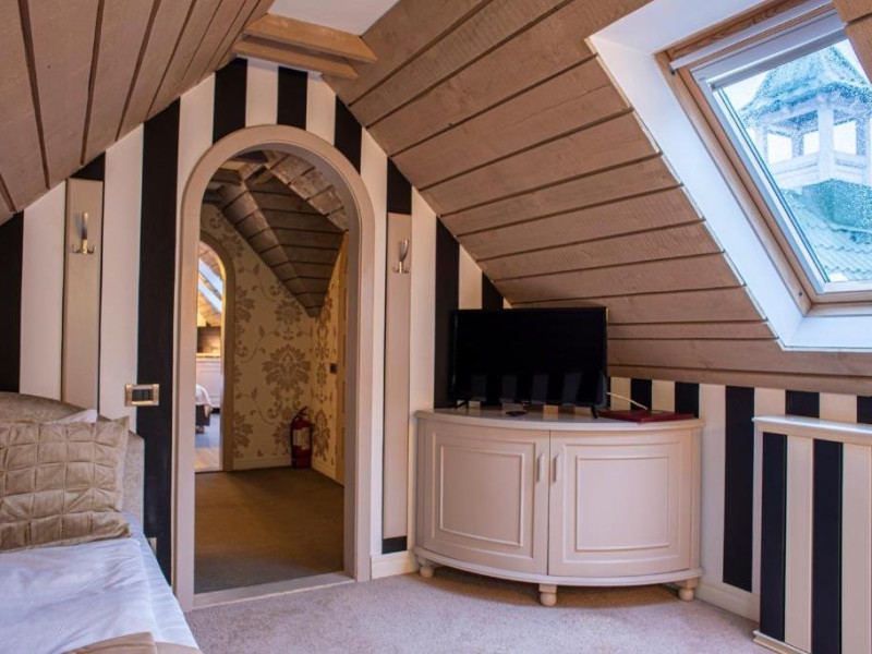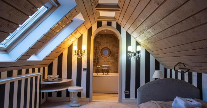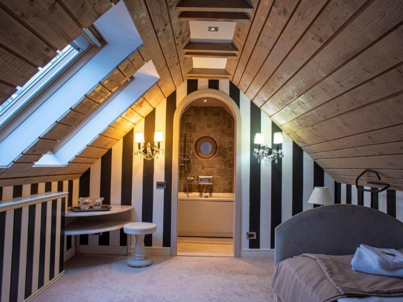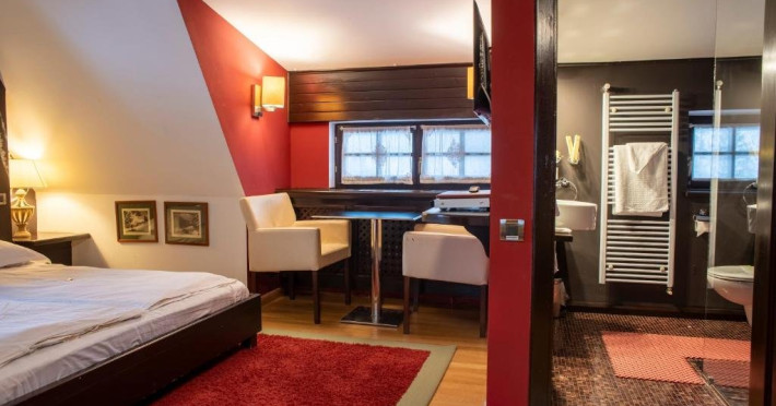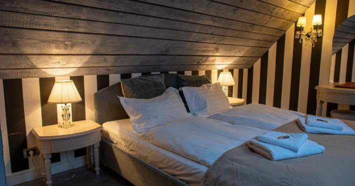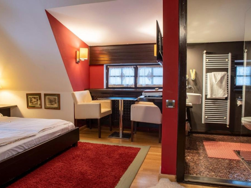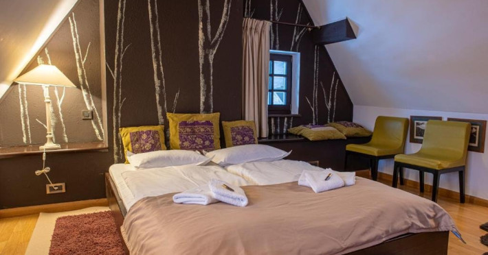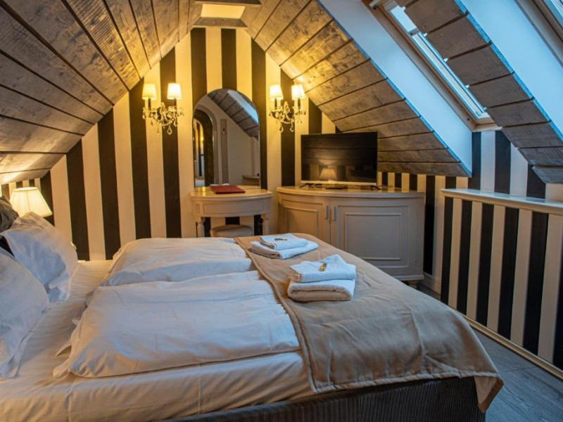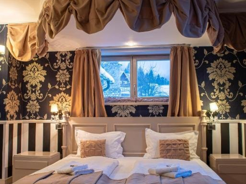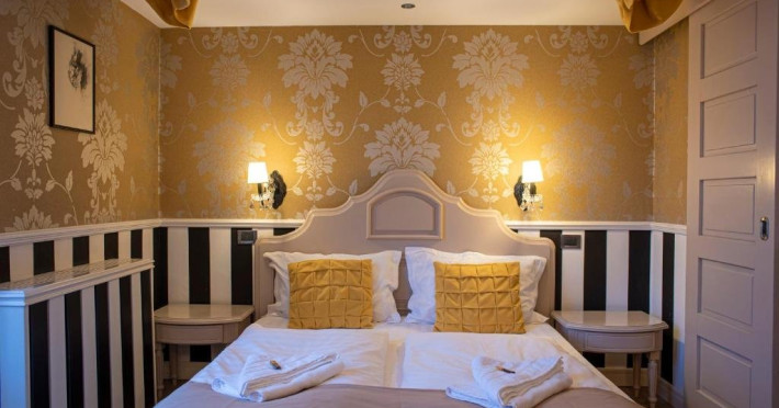 Junior Suite dispune de un dormitor cu pat matrimonial si un dormitor cu pat single, precum si o baie proprie cu cada.