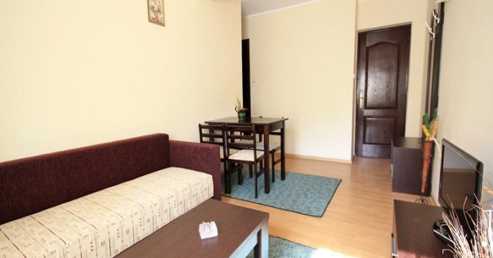 Pensiunea este dotata cu 5 apartamente (living, dormitor, baie, bucatarie), 55 de camere duble dintre care 12 cu doua paturi si 43 cu pat matrimonial.
