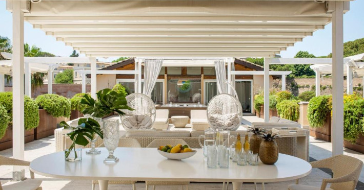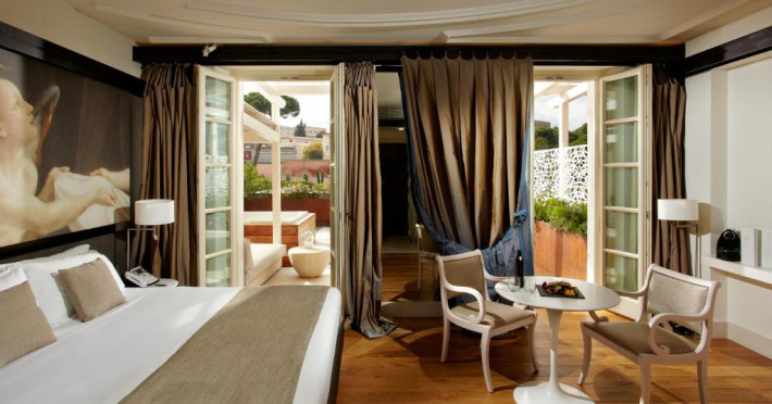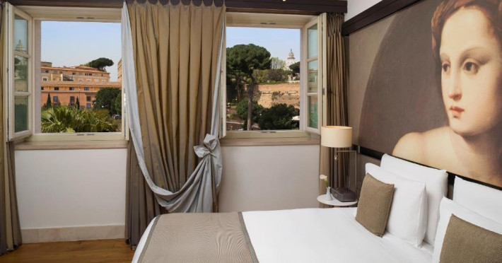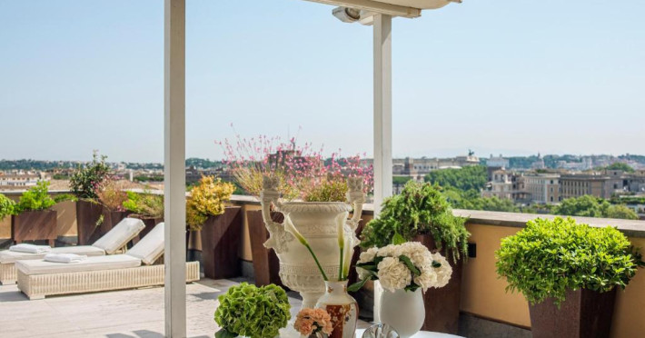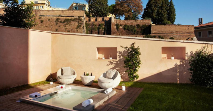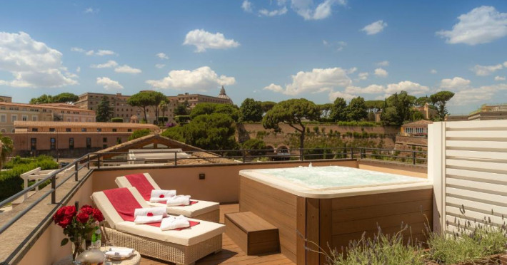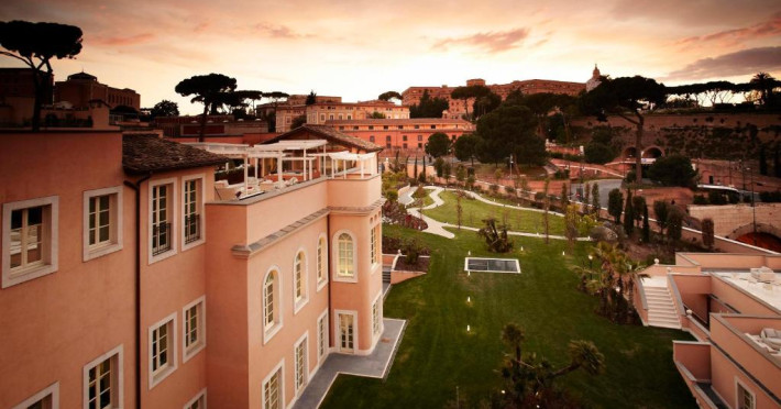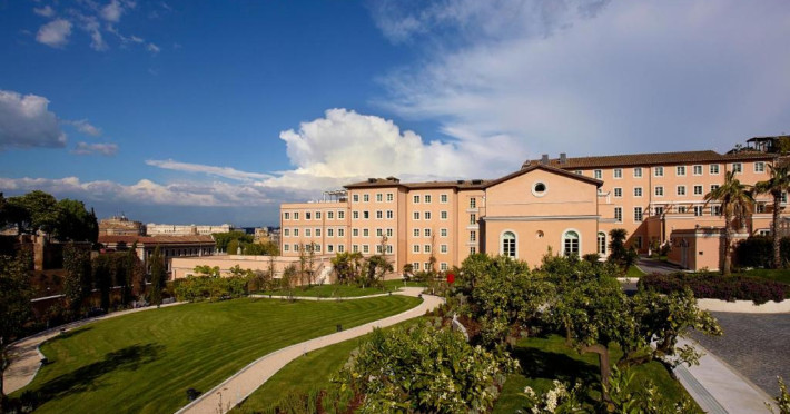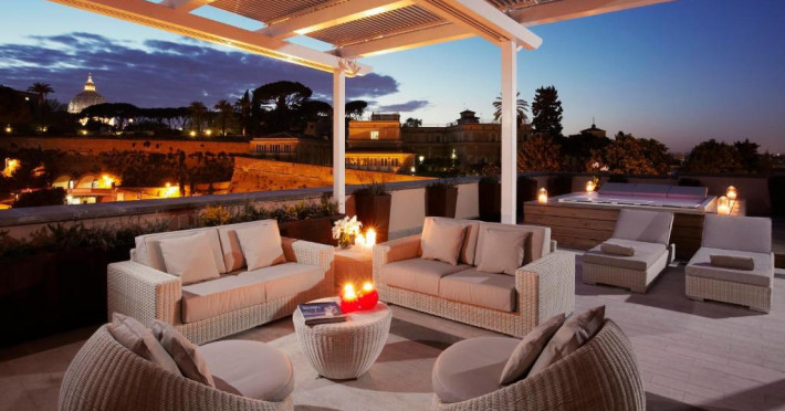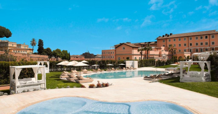Gran Melia, de 5 stele, se află in centrul Romei și are decor elegant și camere de designer cu vedere la Vatican, la Castelul Sant’Angelo, la Vicolo di Sant'Onofrio sau la grădina hotelului. Oaspeții au la dispoziție un centru spa, My Blend by Clarins, si o piscină in aer liber.