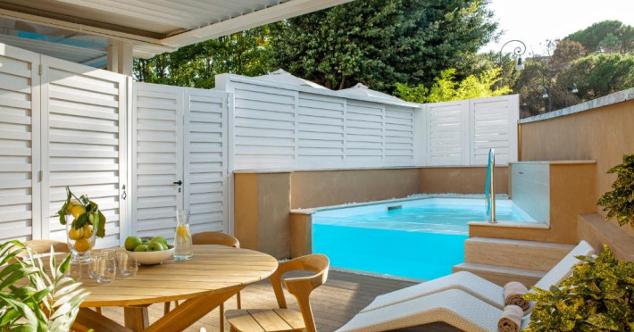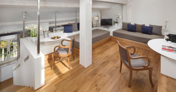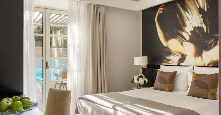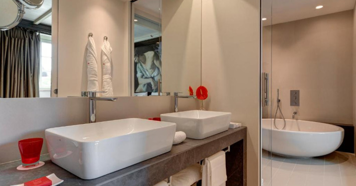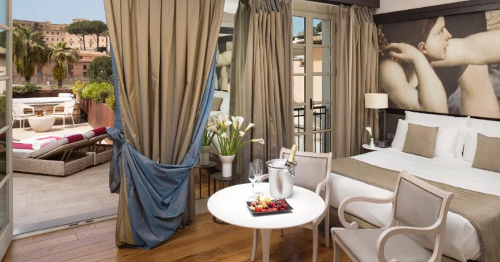 Camerele sunt decorate in nuanțe rafinate de bej, cu elemente din lemn și imbină mobilierul modern cu operele de artă clasice. De asemenea, acestea sunt prevăzute cu WiFi gratuit, TV LCD, stație de andocare pentru iPod și aparat Nespresso. Baia este dotată cu articole de toaletă de lux marca Clarins.