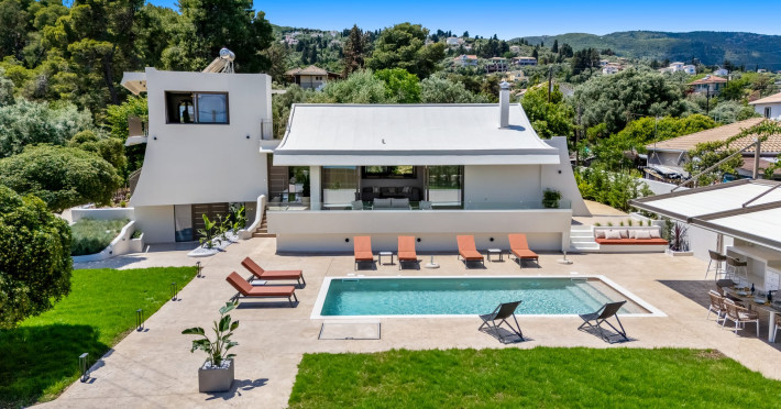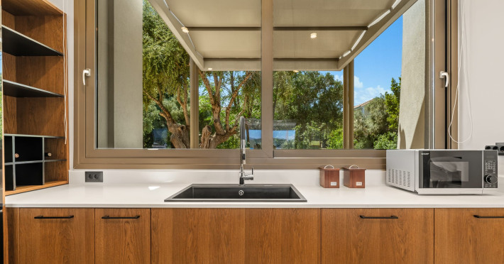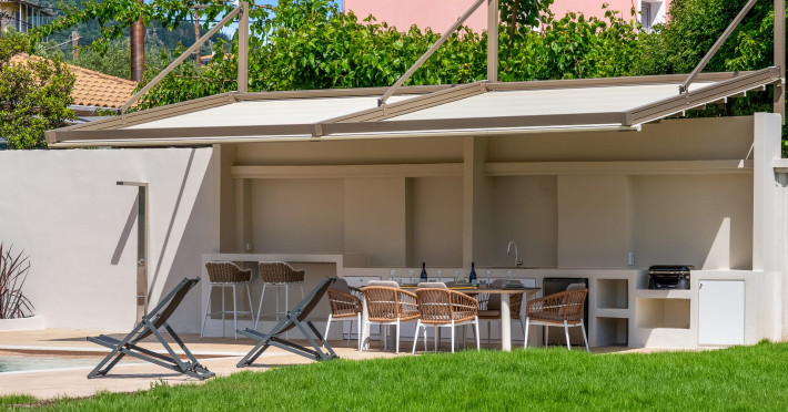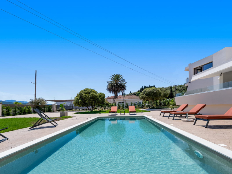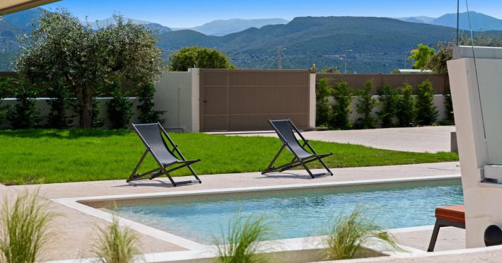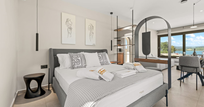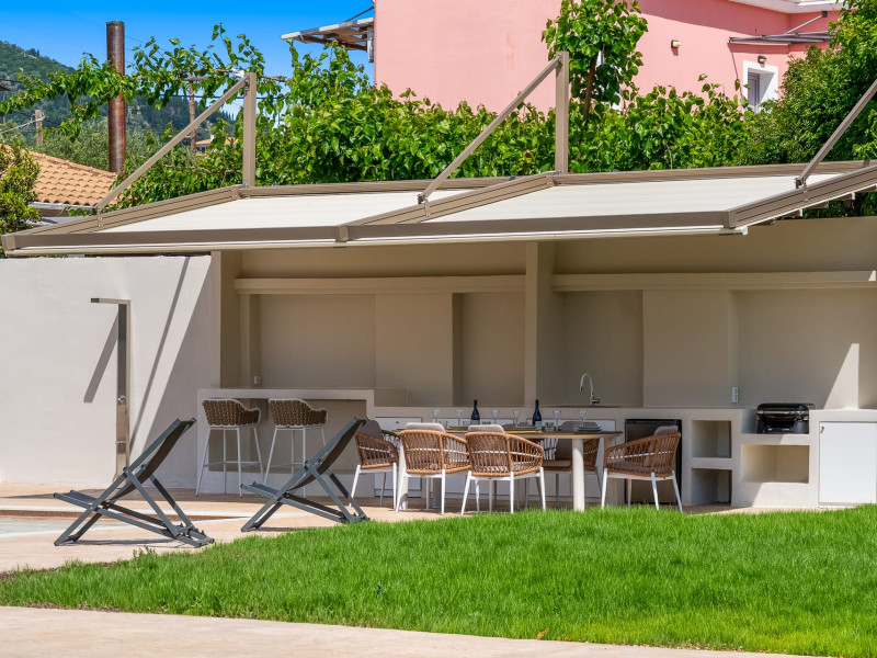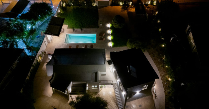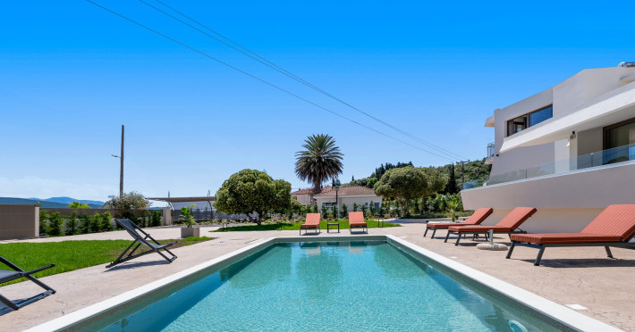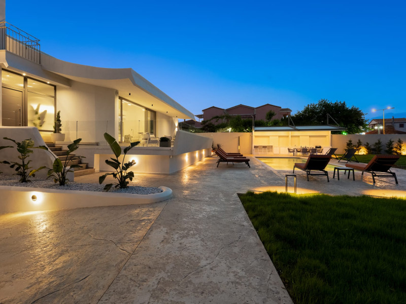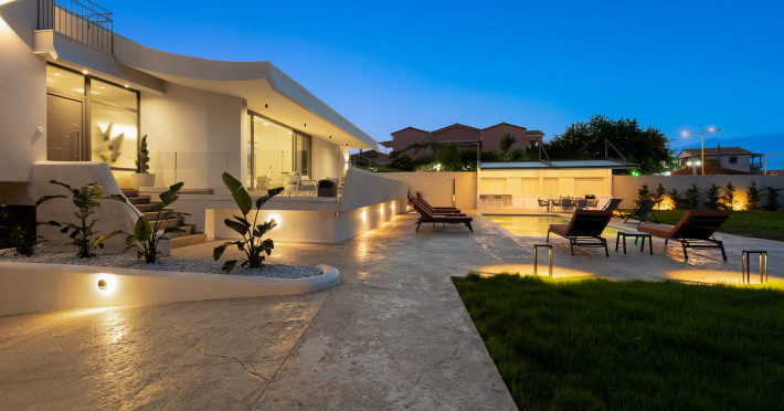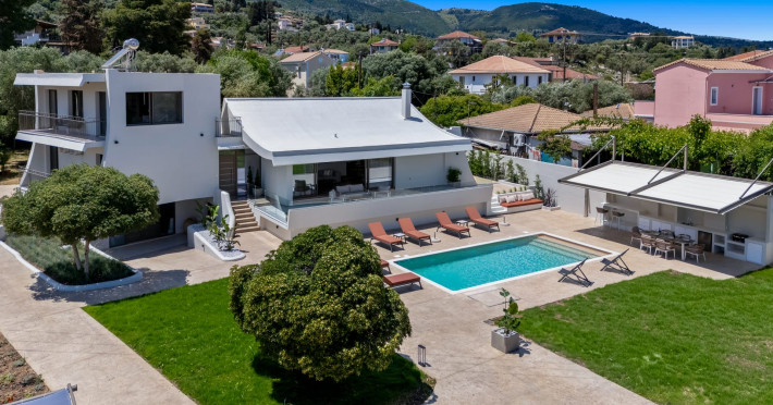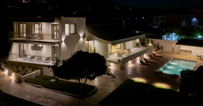 Villa Albagiorno – Glykocharama is a residence that stands out for its aesthetic design, decor, and luxury. It’s ideally located, extremely convenient for exploring the island of Lefkada, and beautifully situated in the port of Lygia, one of the island’s most picturesque spots. From the villa, you’ll enjoy magical sunrises and views of the Ionian Sea.The outdoor areas are beautiful and varied. A large swimming pool takes center stage, along with a built-in kitchen area featuring a bar, barbecue, and a spacious dining table. There are also lawn areas and a backyard with a bar and dining table.The residence comfortably accommodates up to 6 people and is divided into two fully independent levels. The ground floor features a stylish and spacious living room, a fully equipped kitchen, a dining area, a bathroom, and a separate section with two bedrooms and another spacious bathroom.The first floor is occupied by an open-plan studio with unique views, featuring a living area, dining area, equipped kitchen, a double bed, and a private bathroom. The studio is available if the number of guests is between 4 and 6 people.Villa Albagiorno – Glykocharama is a residence that stands out for its aesthetic design, decor, and luxury. It’s ideally located, extremely convenient for exploring the island of Lefkada, and beautifully situated in the port of Lygia, one of the island’s most picturesque spots. From the villa, you’ll enjoy magical sunrises and views of the Ionian Sea.The outdoor areas are beautiful and varied. A large swimming pool takes center stage, along with a built-in kitchen area featuring a bar, barbecue, and a spacious dining table. There are also lawn areas and a backyard with a bar and dining table.The residence comfortably accommodates up to 6 people and is divided into two fully independent levels. The ground floor features a stylish and spacious living room, a fully equipped kitchen, a dining area, a bathroom, and a separate section with two bedrooms and another spacious bathroom.The first floor is occupied by an open-plan studio with unique views, featuring a living area, dining area, equipped kitchen, a double bed, and a private bathroom. The studio is available if the number of guests is between 4 and 6 people.