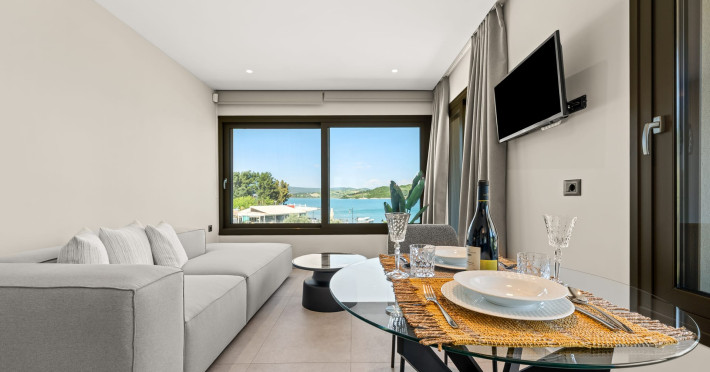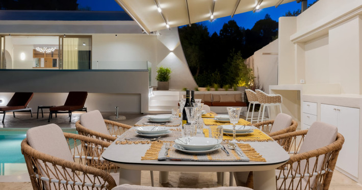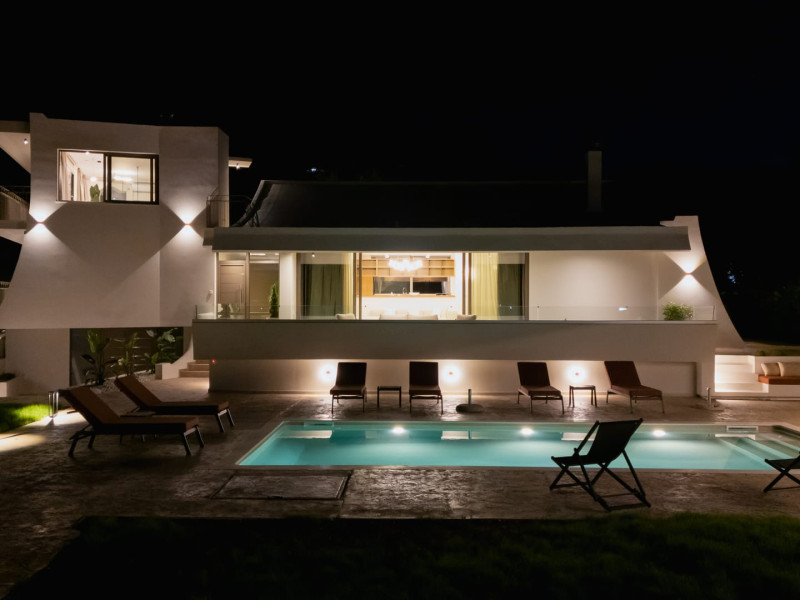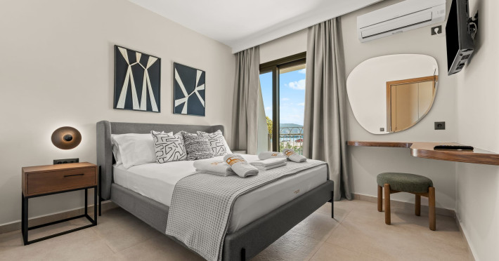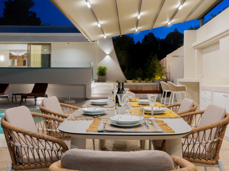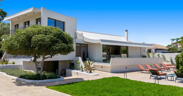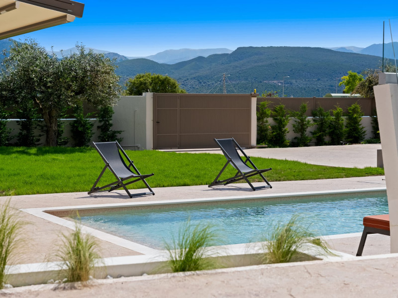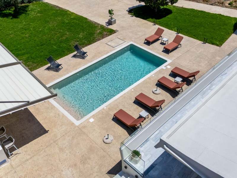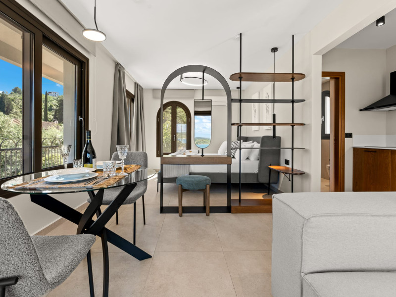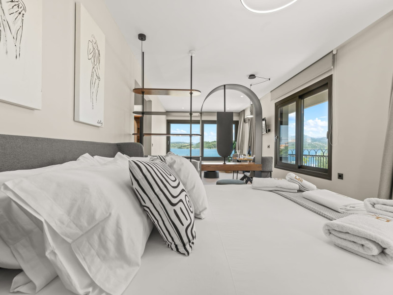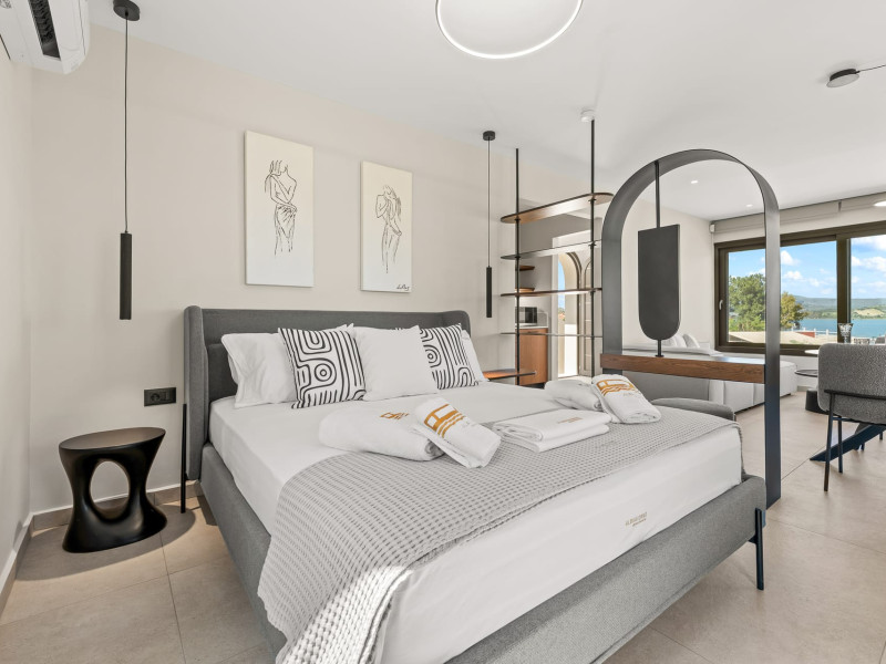 Villa Albagiorno – Glykocharama is a residence that stands out for its aesthetic design, decor, and luxury. It’s ideally located, extremely convenient for exploring the island of Lefkada, and beautifully situated in the port of Lygia, one of the island’s most picturesque spots. From the villa, you’ll enjoy magical sunrises and views of the Ionian Sea.The outdoor areas are beautiful and varied. A large swimming pool takes center stage, along with a built-in kitchen area featuring a bar, barbecue, and a spacious dining table. There are also lawn areas and a backyard with a bar and dining table.The residence comfortably accommodates up to 6 people and is divided into two fully independent levels. The ground floor features a stylish and spacious living room, a fully equipped kitchen, a dining area, a bathroom, and a separate section with two bedrooms and another spacious bathroom.The first floor is occupied by an open-plan studio with unique views, featuring a living area, dining area, equipped kitchen, a double bed, and a private bathroom. The studio is available if the number of guests is between 4 and 6 people.Villa Albagiorno – Glykocharama is a residence that stands out for its aesthetic design, decor, and luxury. It’s ideally located, extremely convenient for exploring the island of Lefkada, and beautifully situated in the port of Lygia, one of the island’s most picturesque spots. From the villa, you’ll enjoy magical sunrises and views of the Ionian Sea.The outdoor areas are beautiful and varied. A large swimming pool takes center stage, along with a built-in kitchen area featuring a bar, barbecue, and a spacious dining table. There are also lawn areas and a backyard with a bar and dining table.The residence comfortably accommodates up to 6 people and is divided into two fully independent levels. The ground floor features a stylish and spacious living room, a fully equipped kitchen, a dining area, a bathroom, and a separate section with two bedrooms and another spacious bathroom.The first floor is occupied by an open-plan studio with unique views, featuring a living area, dining area, equipped kitchen, a double bed, and a private bathroom. The studio is available if the number of guests is between 4 and 6 people.