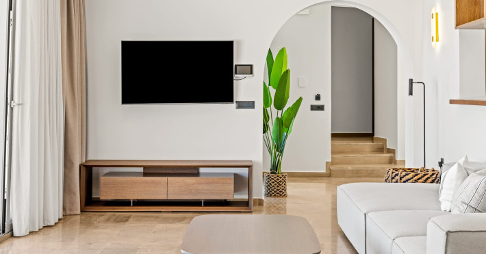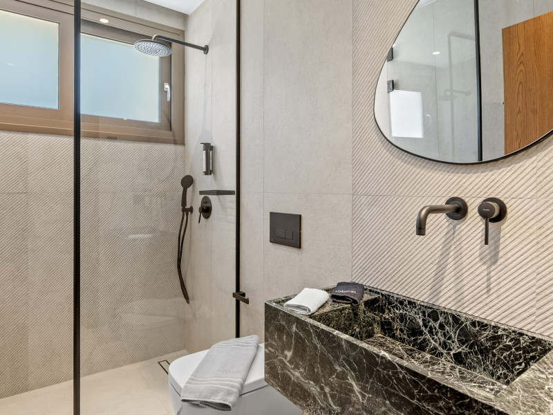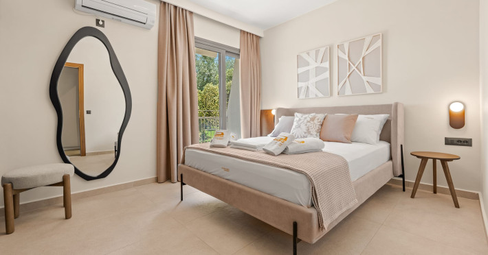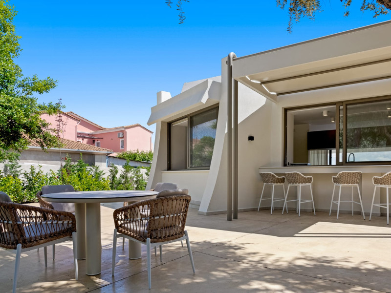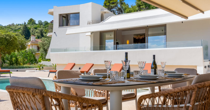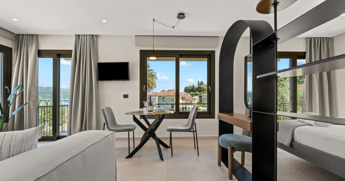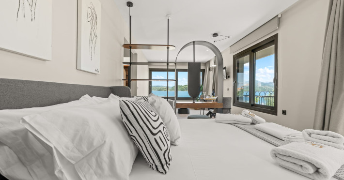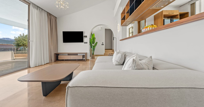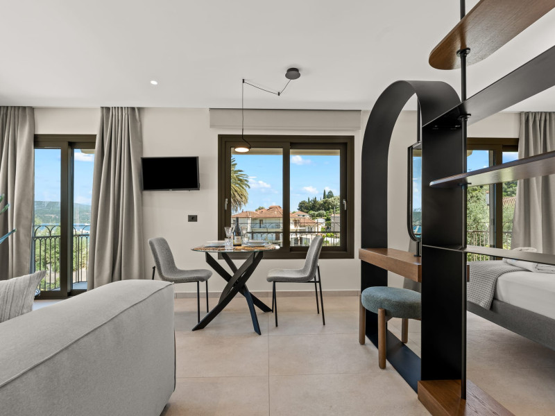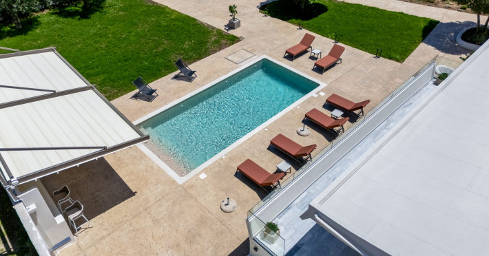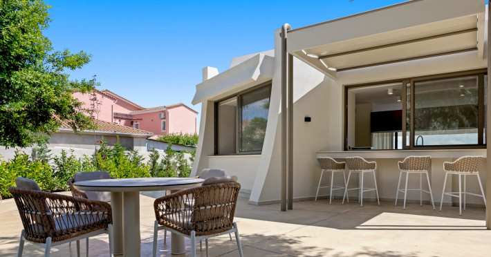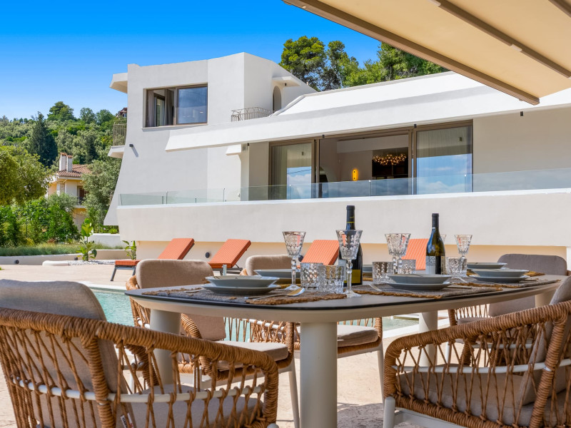 Villa Albagiorno – Glykocharama is a residence that stands out for its aesthetic design, decor, and luxury. It’s ideally located, extremely convenient for exploring the island of Lefkada, and beautifully situated in the port of Lygia, one of the island’s most picturesque spots. From the villa, you’ll enjoy magical sunrises and views of the Ionian Sea.The outdoor areas are beautiful and varied. A large swimming pool takes center stage, along with a built-in kitchen area featuring a bar, barbecue, and a spacious dining table. There are also lawn areas and a backyard with a bar and dining table.The residence comfortably accommodates up to 6 people and is divided into two fully independent levels. The ground floor features a stylish and spacious living room, a fully equipped kitchen, a dining area, a bathroom, and a separate section with two bedrooms and another spacious bathroom.The first floor is occupied by an open-plan studio with unique views, featuring a living area, dining area, equipped kitchen, a double bed, and a private bathroom. The studio is available if the number of guests is between 4 and 6 people.Villa Albagiorno – Glykocharama is a residence that stands out for its aesthetic design, decor, and luxury. It’s ideally located, extremely convenient for exploring the island of Lefkada, and beautifully situated in the port of Lygia, one of the island’s most picturesque spots. From the villa, you’ll enjoy magical sunrises and views of the Ionian Sea.The outdoor areas are beautiful and varied. A large swimming pool takes center stage, along with a built-in kitchen area featuring a bar, barbecue, and a spacious dining table. There are also lawn areas and a backyard with a bar and dining table.The residence comfortably accommodates up to 6 people and is divided into two fully independent levels. The ground floor features a stylish and spacious living room, a fully equipped kitchen, a dining area, a bathroom, and a separate section with two bedrooms and another spacious bathroom.The first floor is occupied by an open-plan studio with unique views, featuring a living area, dining area, equipped kitchen, a double bed, and a private bathroom. The studio is available if the number of guests is between 4 and 6 people.
