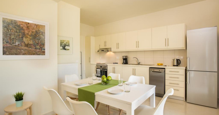 The ground floor of the villa features a fully equipped kitchen along with its dining table and the living room. Furthermore, it also features one bedroom.