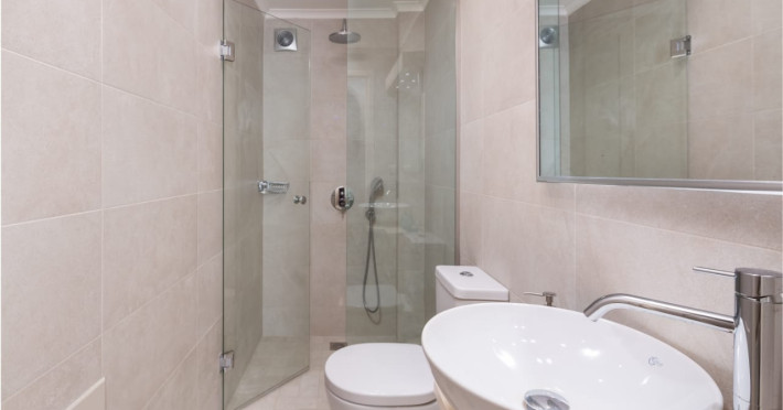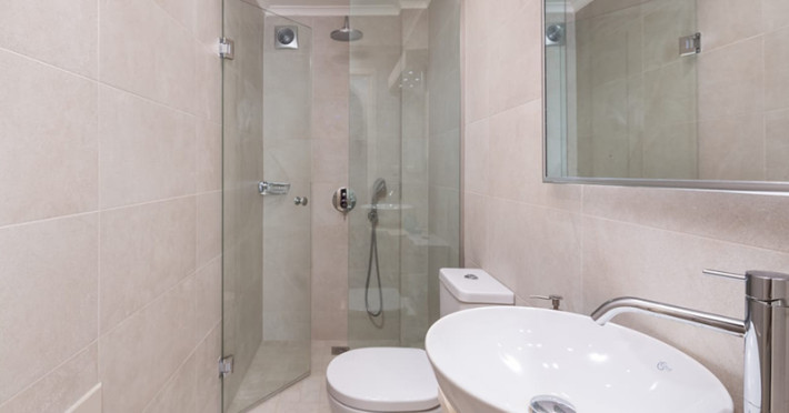 bathroom with shower on the upper level and one bathroom with a shower on the