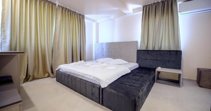 - 1 camera DBL deluxe cu pat matrimonial, dulap, TV, AC si baie proprie cu cada