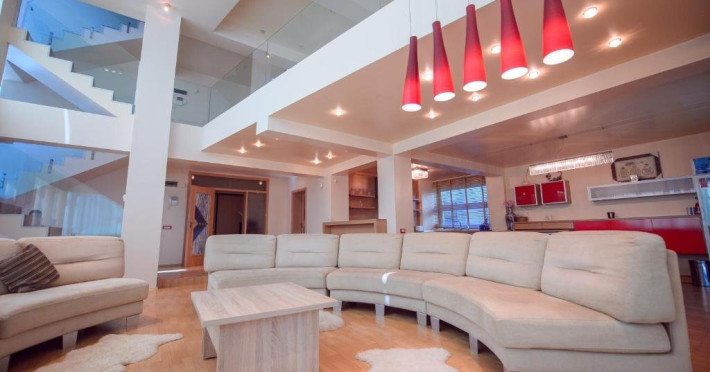 Suprafata generoasa, 300 mp, cele 5 spatii de cazare independente, living ul open space, bucataria moderna complet mobilata si utilata, curtea interioara umbroasa, asigura reusita unui sejur de 5*.