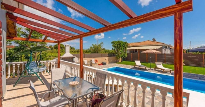 Near Zante Water Village. With a stay at this villa in Zakynthos, youll be within a 15-minute drive of Zakynthos Ferry Terminal and Laganas Beach. This villa is 4.8 mi (7.7 km) from Tsilivi Beach and 4.9 mi (7.9 km) from Kalamaki Beach. Make yourself comfortable in this air-conditioned villa, which features a fireplace and a private pool. A kitchen is outfitted with a refrigerator, an oven, and a stovetop. Complimentary wireless internet access keeps you connected, and satellite programming is available for your entertainment. Conveniences include a microwave and a coffee/tea maker. Enjoy recreation amenities such as a seasonal outdoor pool or take in the view from a terrace.Datorita dinamicitatii domeniului disponibilitatea ofertelor se modifica de la un moment la altul. De aceea ofertele sunt valabile in limita locurilor disponibile. Agentia nu este responsabila pentru eventualele neconcordante care pot aparea intre informatiile privind tarifele si alte detalii din site si informatiile primite in agentie. In aceste cazuri vor avea prioritate, intotdeauna, informatiile primite in agentie.