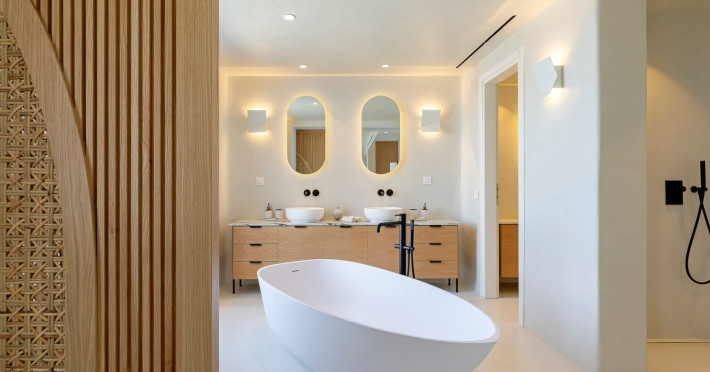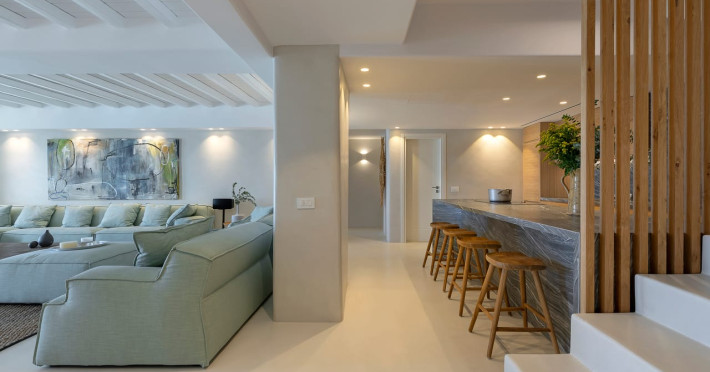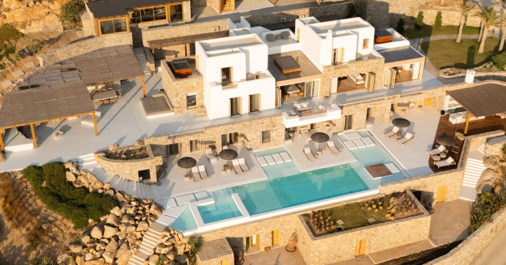 Perched above a pristine natural bay, Casa Spilia is an exceptional 850 m² architectural retreat nestled within a 4,000 m² private plot, offering truly uninterrupted panoramic views of the coastline, blending effortless luxury with the island’s untamed beauty. Just a short drive from the island’s iconic nightlife, the villa provides a serene escape that doesn't compromise on access to vibrant entertainment.The main villa is thoughtfully designed to celebrate uncompromised island living, featuring expansive open-plan spaces anchored by a grand formal dining area—perfect for hosting unforgettable gatherings. The residence boasts seven ensuite bedrooms, as well as a generous entertainment lounge that opens directly onto the sprawling main pool deck, where breathtaking sunset views become a daily ritual.For added privacy, two additional ensuite guest rooms are discreetly positioned on the lower pool level, ideal for visitors seeking a more secluded stay.Additional highlights of Casa Spilia include:A fully equipped professional kitchenDedicated accommodation for support staffA modern fitness suiteAmple covered on-site parkingThis is a villa where timeless elegance meets modern comfort—a perfect balance of tranquility and sophistication.Perched above a pristine natural bay, Casa Spilia is an exceptional 850 m² architectural retreat nestled within a 4,000 m² private plot, offering truly uninterrupted panoramic views of the coastline, blending effortless luxury with the island’s untamed beauty. Just a short drive from the island’s iconic nightlife, the villa provides a serene escape that doesn't compromise on access to vibrant entertainment.The main villa is thoughtfully designed to celebrate uncompromised island living, featuring expansive open-plan spaces anchored by a grand formal dining area—perfect for hosting unforgettable gatherings. The residence boasts seven ensuite bedrooms, as well as a generous entertainment lounge that opens directly onto the sprawling main pool deck, where breathtaking sunset views become a daily ritual.For added privacy, two additional ensuite guest rooms are discreetly positioned on the lower pool level, ideal for visitors seeking a more secluded stay.Additional highlights of Casa Spilia include:A fully equipped professional kitchenDedicated accommodation for support staffA modern fitness suiteAmple covered on-site parkingThis is a villa where timeless elegance meets modern comfort—a perfect balance of tranquility and sophistication.