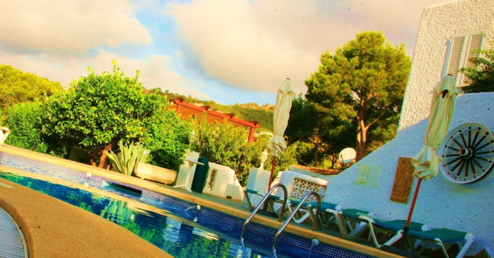 Villa Columbus, a charming 2-star family-run place, is located in the seaside resort of Peguera, 35 km from Palma airport and 100 meters from a beautiful sandy beach. It comprises three villas, offering 30 individually accessible rooms. Upper-floor rooms feature terraces, while ground-floor rooms boast patios or direct access to the pool area. Amenities include Wi-Fi in public areas, and all rooms are equipped with a shower, TV, safe and fridge (fridge is optional with an extra charge). A hearty buffet breakfast is included and served in the restaurant or on the lovely outdoor terrace amidst gardens and a fountain. Guests can relax in the sun or under a pergola in the solarium. The restaurant also offers à la carte lunch and dinner, including themed dinners. Please note: Check-in is from 200 PM to 11:30 PM. For arrivals outside these hours, please contact the hotel in advance to arrange a late check-in. A late check-in fee of â¬50 applies.Datorita dinamicitatii domeniului disponibilitatea ofertelor se modifica de la un moment la altul. De aceea ofertele sunt valabile in limita locurilor disponibile. Agentia nu este responsabila pentru eventualele neconcordante care pot aparea intre informatiile privind tarifele si alte detalii din site si informatiile primite in agentie. In aceste cazuri vor avea prioritate, intotdeauna, informatiile primite in agentie.