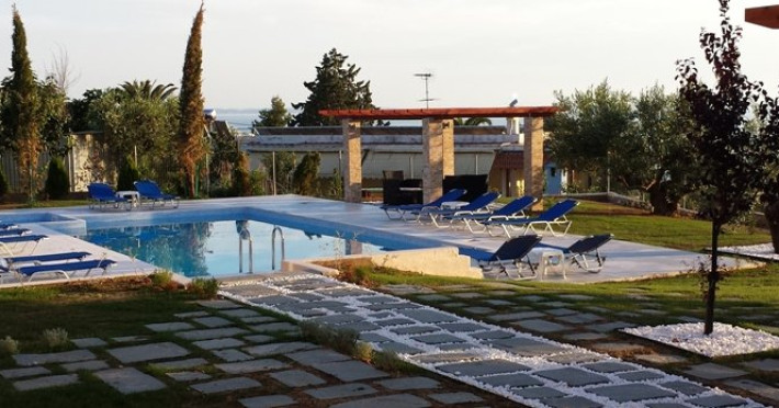 Villa Decauville - se afla in Halkidiki, pe bratul Sithonia, in statiunea Gerakini. Este o mica afacere de famile, o cladire ce cuprinde un studio, 2 Junior Suites, 1 Suita si 2 apartamente.Facilitati vila: gradina cu maslini, piscina, loc de joaca pentru copii, loc pentru gratar, parcare proprie.