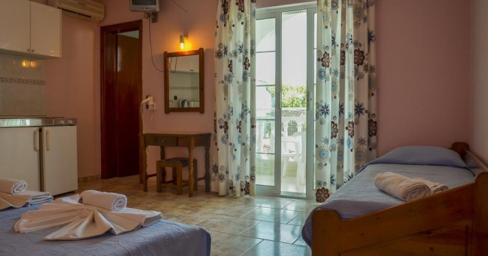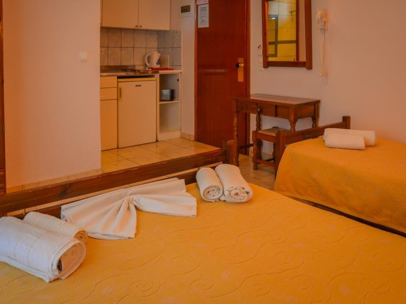 12 studiouri dotate cu aer conditionat (gratuit) , TV, baie cu dus, uscator de par, balcon, WiFi (gratuit), chicineta utilata (plit electric, ceainic electric, toaster), frigider.
