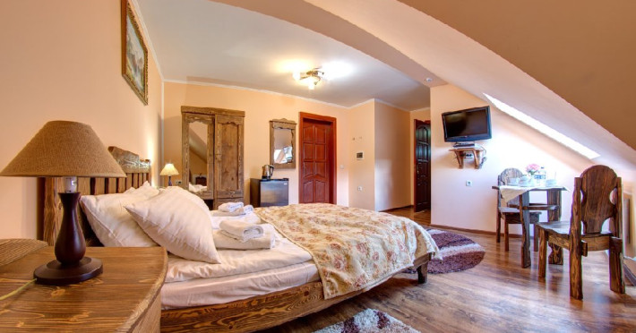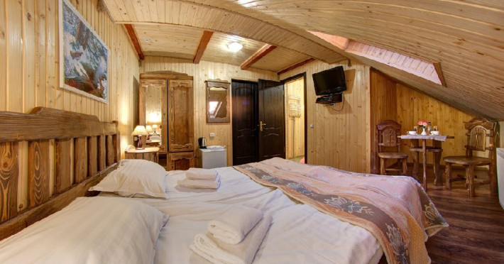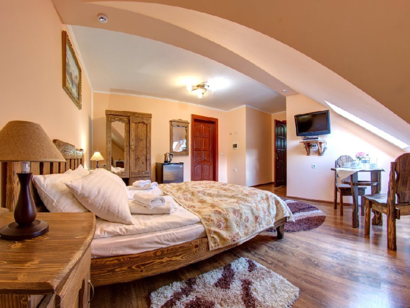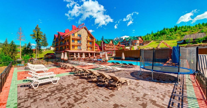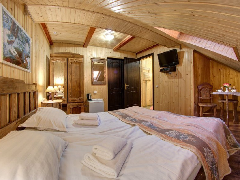 Localizare: In statiunea de schi Bukovel, la 800 de metri de cea mai apropiata instalatie de schi.Facilitati hotel: Restaurant, gradina, foisor, gratar, bar, internet Wi-Fi gratuit, acces pentru persoanele cu dizabilitati, tersa, jacuzzi, sala de conferinte, sala de fitness, parcare privata gratuita (20 de autoturisme). Urmatoarele servicii ale complexului hotelier se platesc separat: sauna, piscina, biliard, tenis de masa.