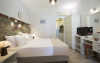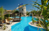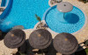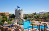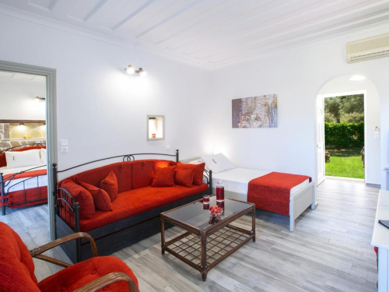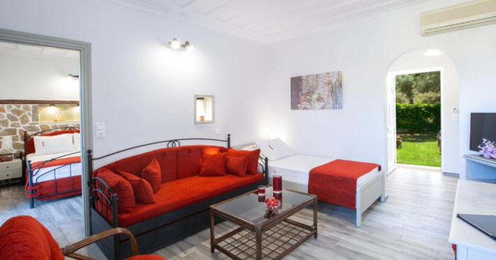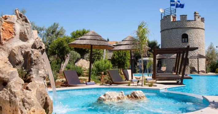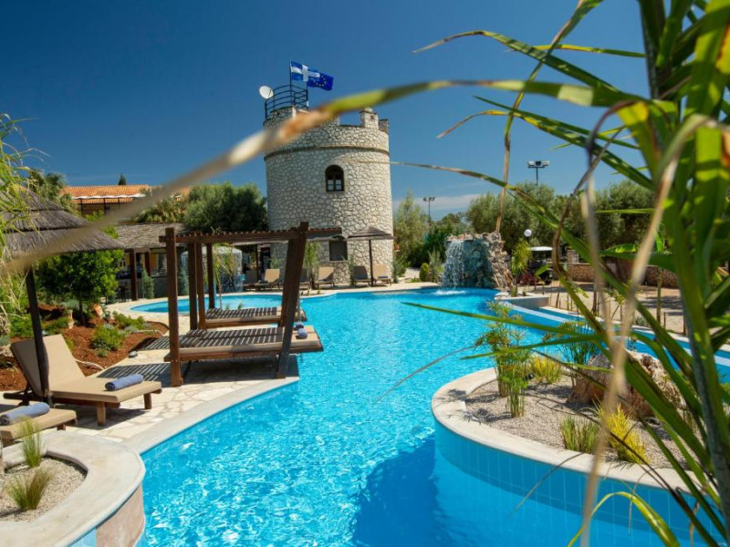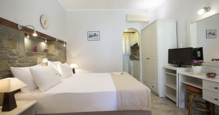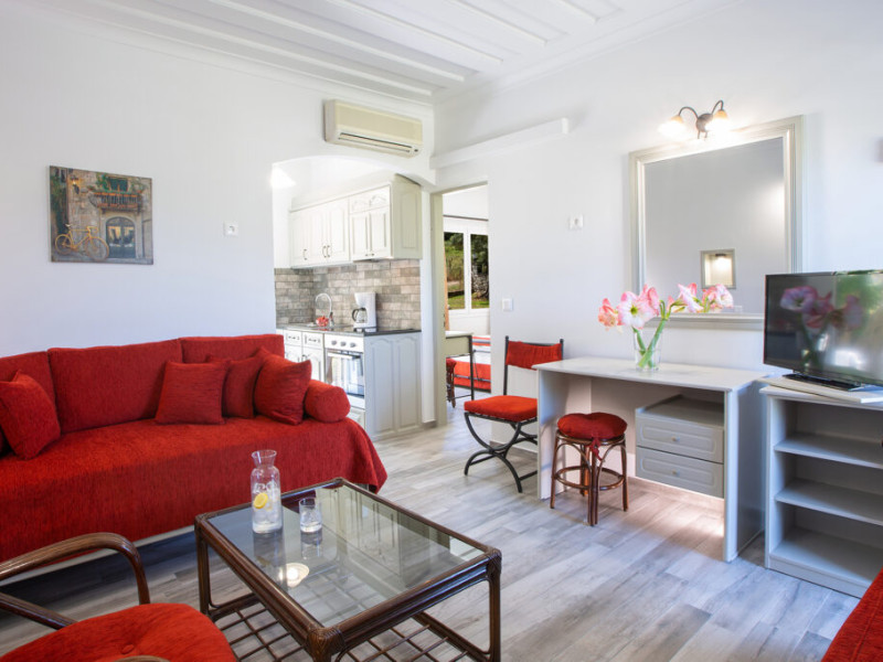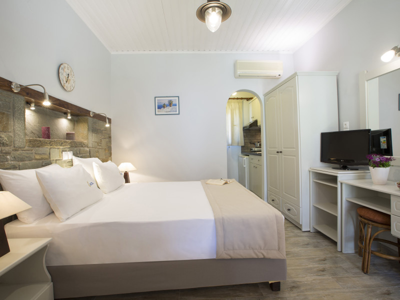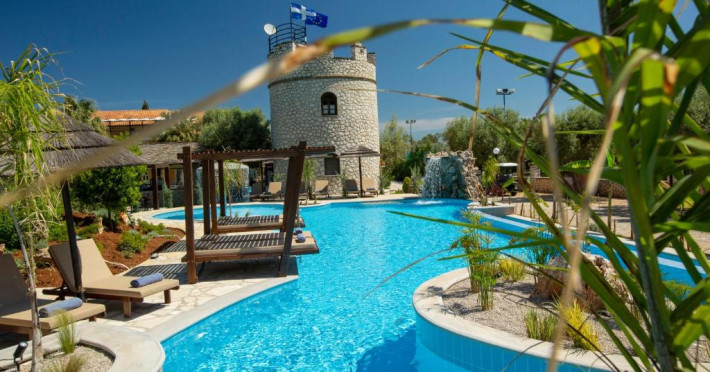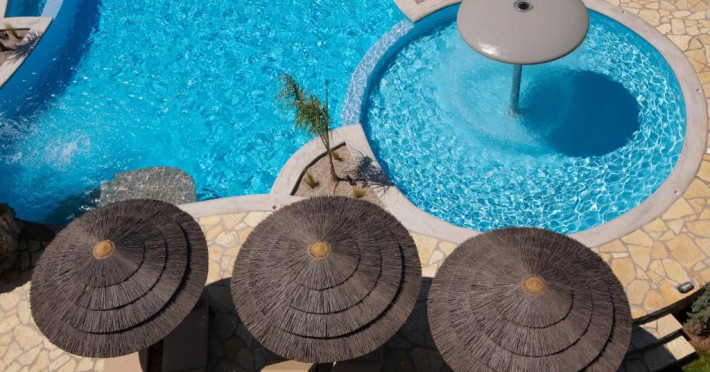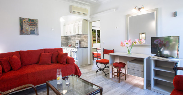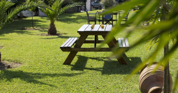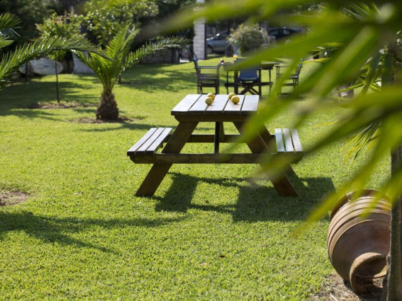 It provides modern, self-contained and perfectly furnished studios and one bedroom apartments with fully eqquipped kitchen, W.C., telephone, T.V. and air condition. Some suites are also provided for an advanced sence and experience of luxury and elegance. It offers a comfortable, well-tended, all green open space of 12.000 m2 with swimming pool (for adults and for children with hydro - massage), Snack Bar, where breakfast can be served, playground, basketball court, volleyball court, tennis court, table – tennis, secure, private and roofed parking lots, exclusive for every apartment.