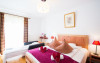 Camera Dubla Twin are doua paturi separate de dimensiuni 90 x 200 cm si balcon, cu orientarea catre sud si vederea catre gradina japoneza si Masivul Bucegi.