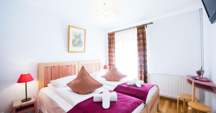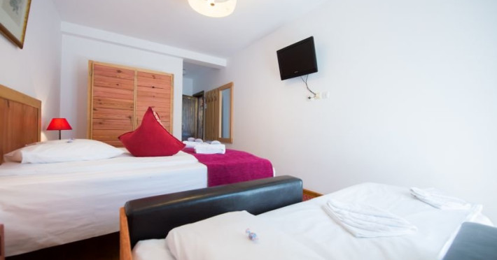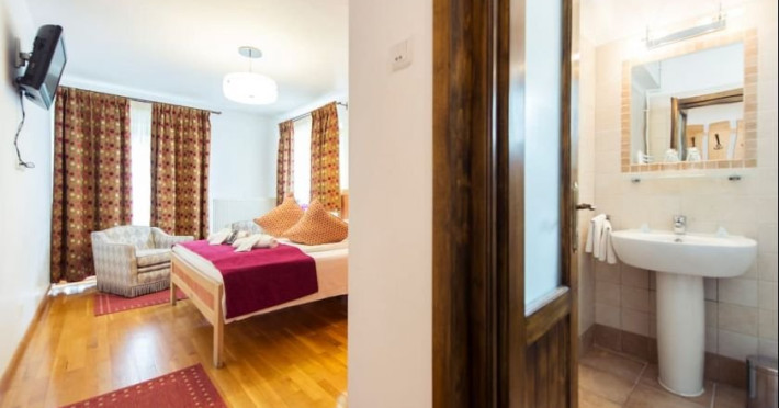 Camerele dispun de baie proprie cu dus/cada, uscator de par, TV, Wi-Fi, papuci de casa.