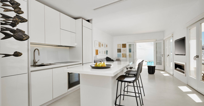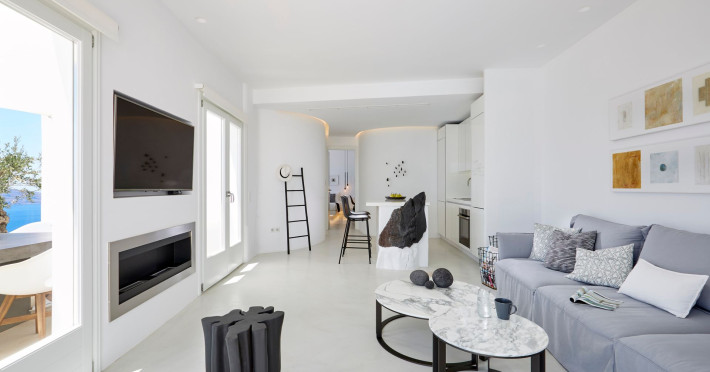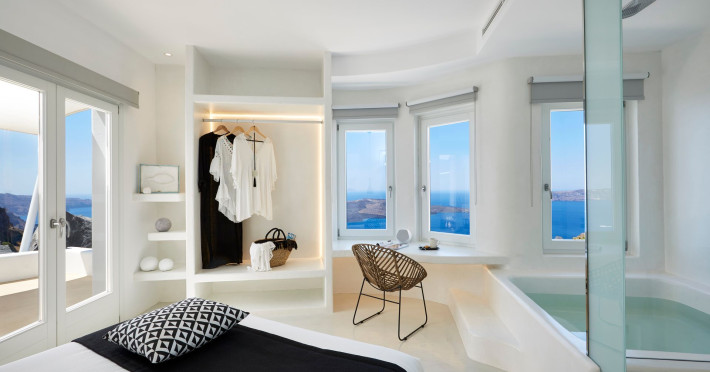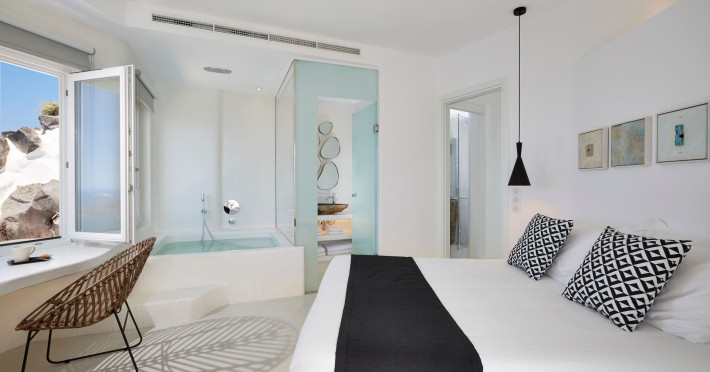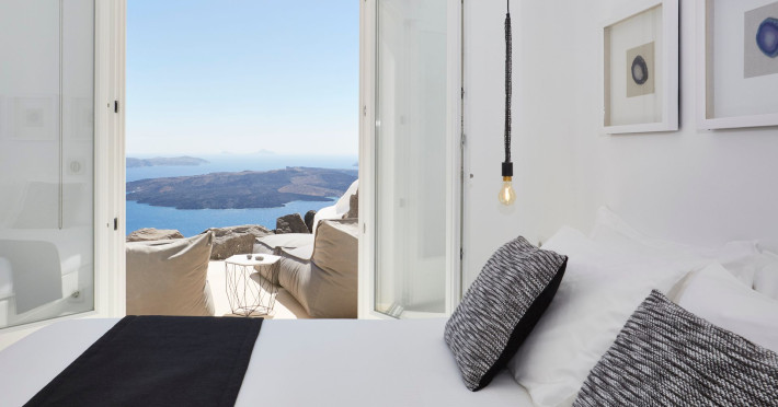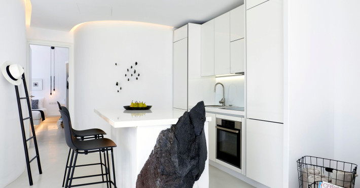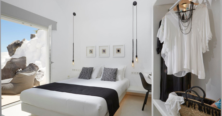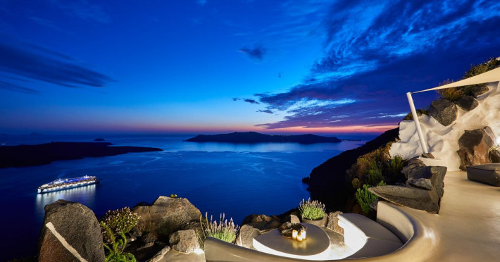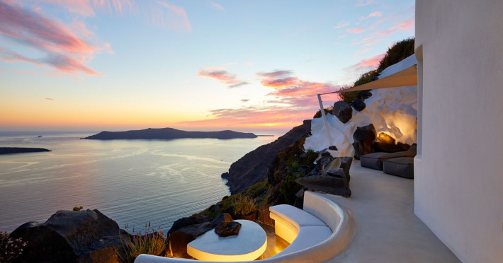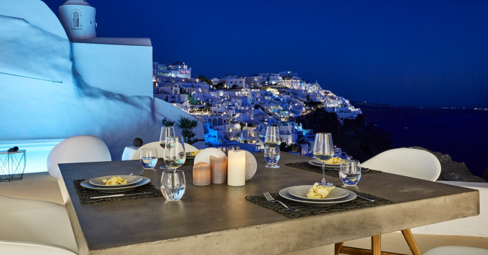 The Santorini villa Etheras derives her name from the Greek word for the fifth element, the so called quintessence. Etheras, along with fire, air, water, and earth, is the mystical element from which the world was made. Thus, the ancient Greeks attributed Etheras ideal qualities, like a worldly presented element derived from the home of the Gods. The villa Etheras true to her name, compiles key aesthetic principles such as a spacious living room, two bedrooms with ensuite bathrooms, and a fully-equipped kitchen while it can host up to four guests. Villa Etheras hangs imposingly from the rocks where its exterior spreads over 130 sq.m. The villas private surrounding patio offers plenty of luxurious touches like a private infinity swimming pool, outdoor dining area, pool and off-pool loungers , all complementing the perfect relaxation canvas. Enjoy the warmth of Santorinis sun as you admire the breathtaking panoramic views of the caldera. The outdoor area of Villa Etheras is an extension of the rock and combine endless views with privacy.Datorita dinamicitatii domeniului disponibilitatea ofertelor se modifica de la un moment la altul. De aceea ofertele sunt valabile in limita locurilor disponibile. Agentia nu este responsabila pentru eventualele neconcordante care pot aparea intre informatiile privind tarifele si alte detalii din site si informatiile primite in agentie. In aceste cazuri vor avea prioritate, intotdeauna, informatiile primite in agentie.