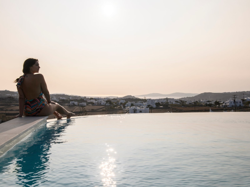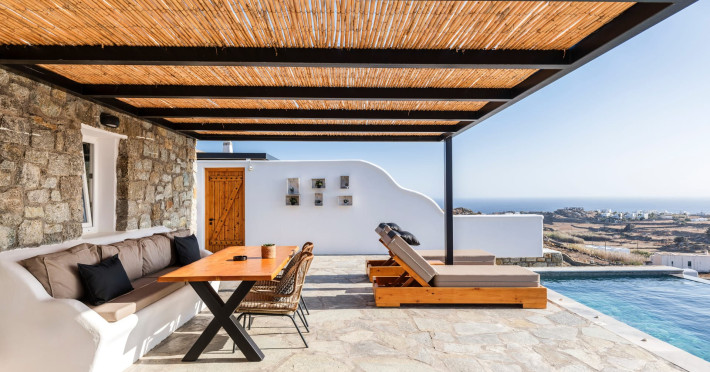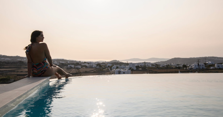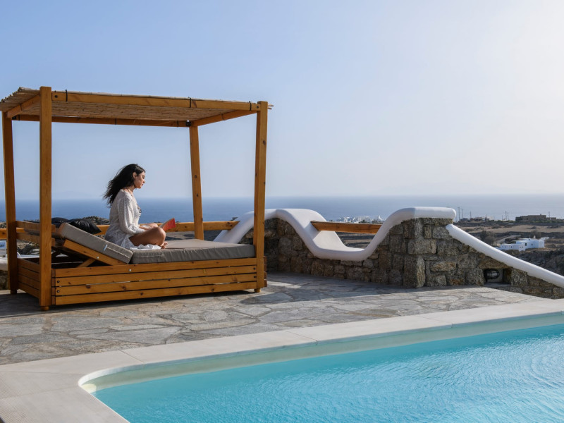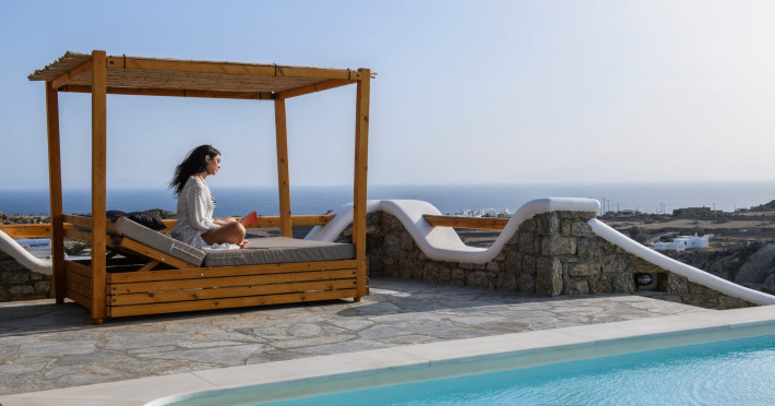 Following a private road overlooking the quintessential views of Mykonian landscape, you reach your destination for this summer, Villa Evi. In a restricted, quiet location with unparalleled panoramic views of the Aegean Sea and the Mykonian sunsets, the luxurious complex is ideal for moments of absolute serenity, peace and tranquility, away from the large crowds.