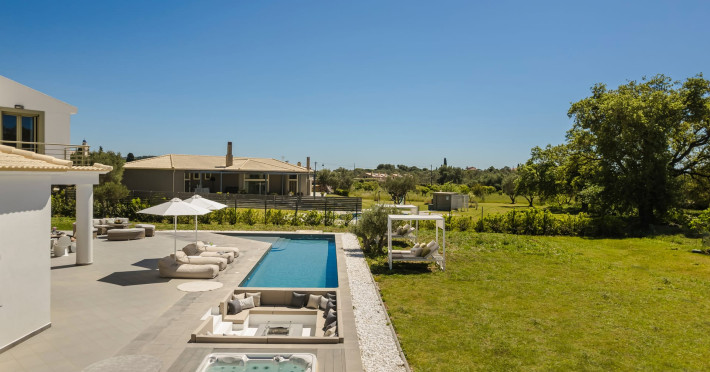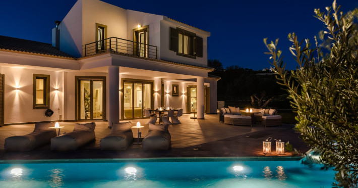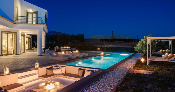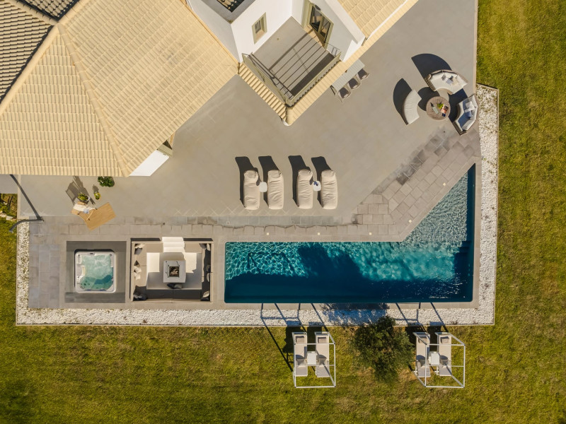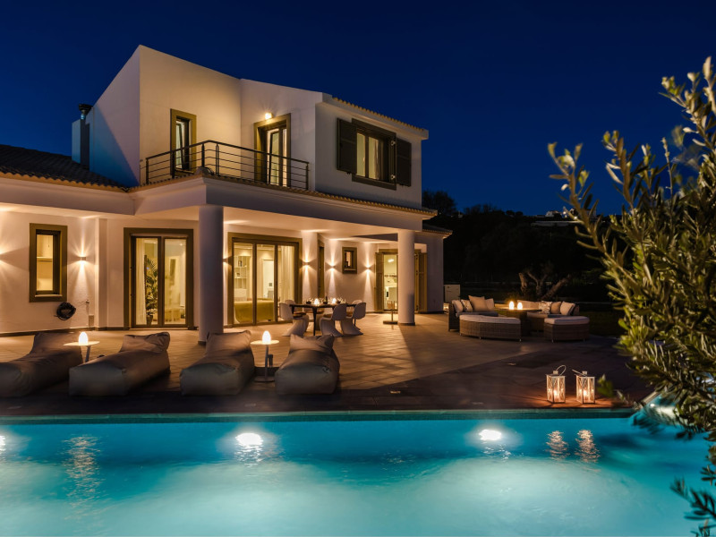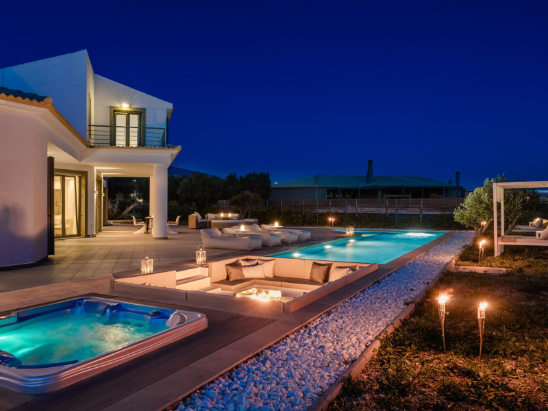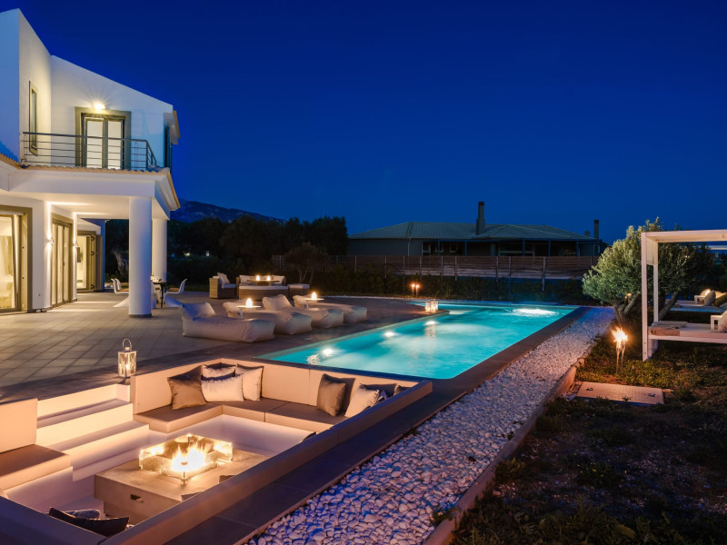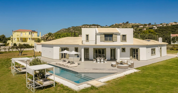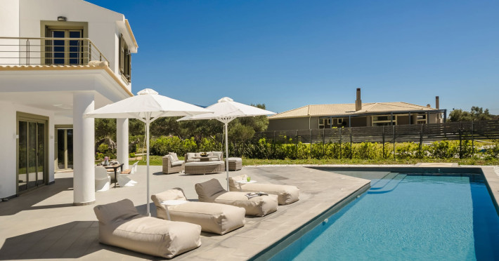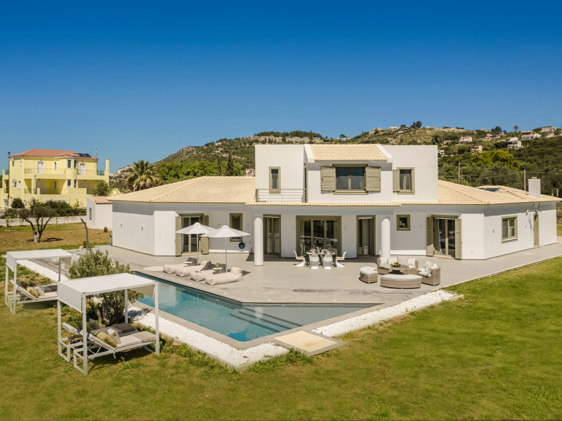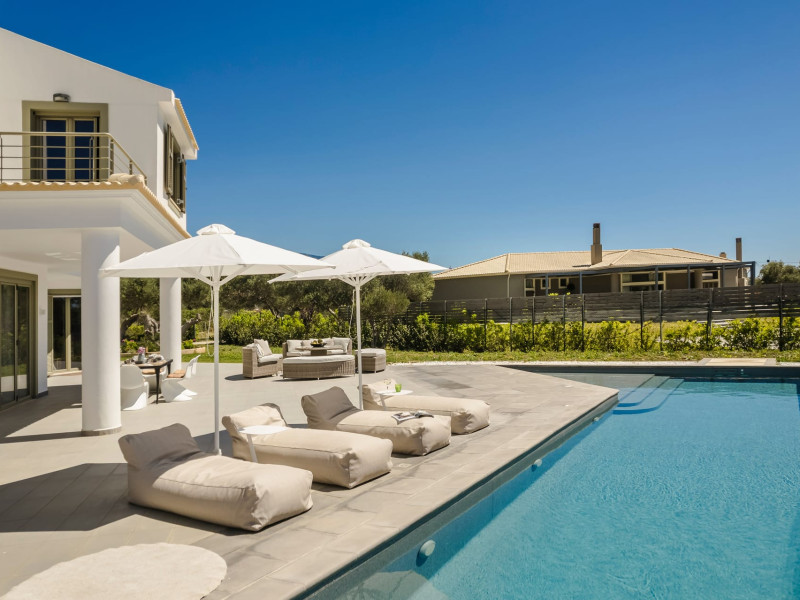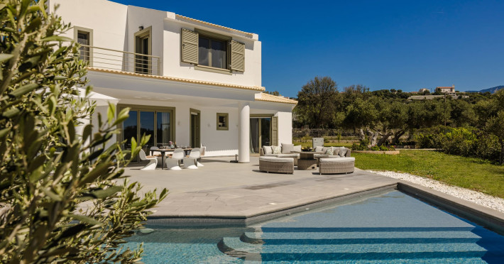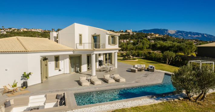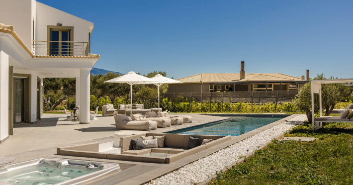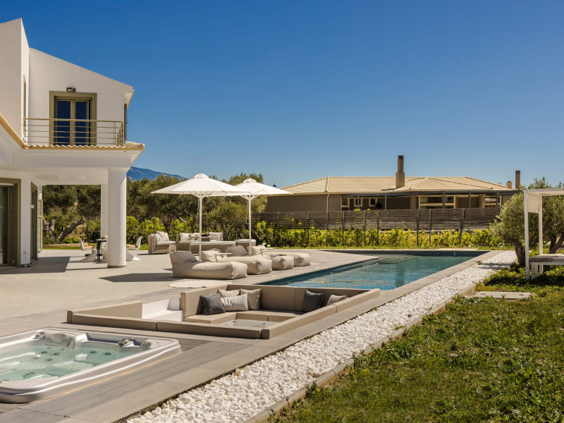 Villa Felicity is a supreme villa residence nestled in the village of Svoronata minutes away from Kefalonia's most desirable beaches, the island's International Airport, and the capital - Argostoli. The villa measures 350 m² of interior space featuring in total 4 bedrooms and 4 bathrooms which can comfortably accommodate 6 guests and 750 m² of exterior space.Villa Felicity boasts a Panoramic pool view and its design follows mainly the "open floor" layout principles, giving to its residents easy access to the indoor & outdoor areas.It has a fully equipped kitchen & dining room, a living room, and a library/study room. As per our pet policy, pets are not allowed.Datorita dinamicitatii domeniului disponibilitatea ofertelor se modifica de la un moment la altul. De aceea ofertele sunt valabile in limita locurilor disponibile. Agentia nu este responsabila pentru eventualele neconcordante care pot aparea intre informatiile privind tarifele si alte detalii din site si informatiile primite in agentie. In aceste cazuri vor avea prioritate, intotdeauna, informatiile primite in agentie.