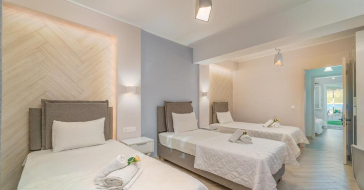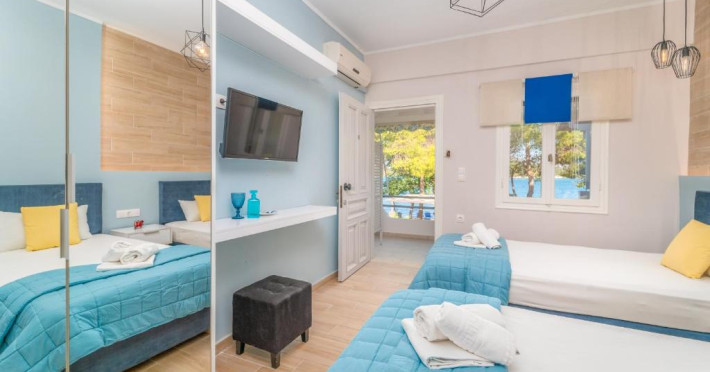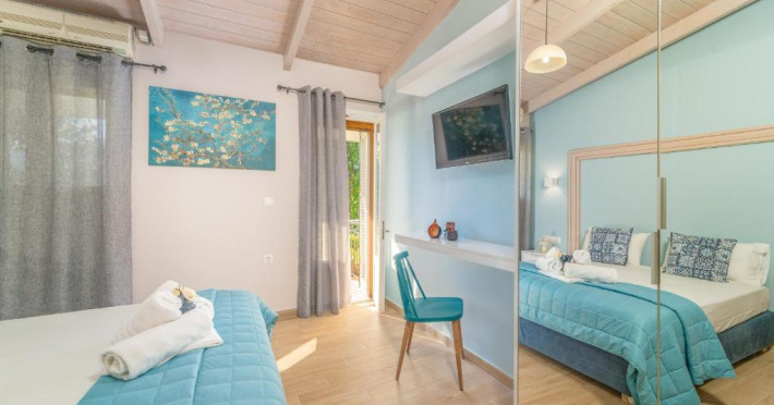 Capitala insulei, Lefkada, se află la 3 km, iar Aeroportul Aktio este la o distantă de aproximativ 25 km. Proprietatea are parcare privată gratuită.