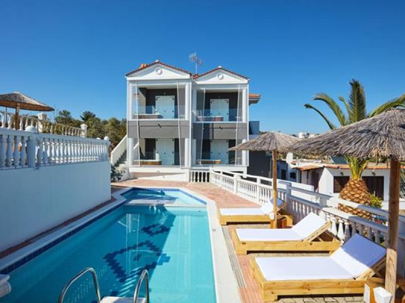 Villa Fylaktos is 1-minute walk from the beach. Provides 8 apartments fully equipped with bedroom, living room and equipped kitchen, outdoor pool and children’s pool, a playground and a part meant for relaxation, which is on different levels, with deckchairs overlooking the blue Aegean Sea.Full description