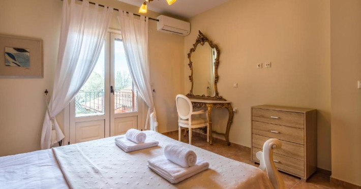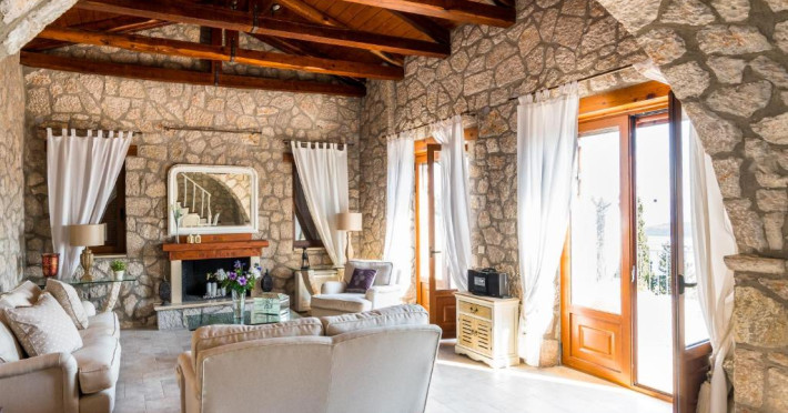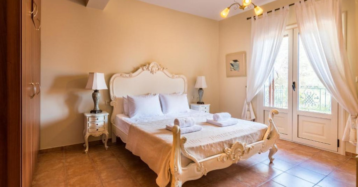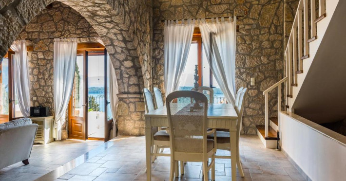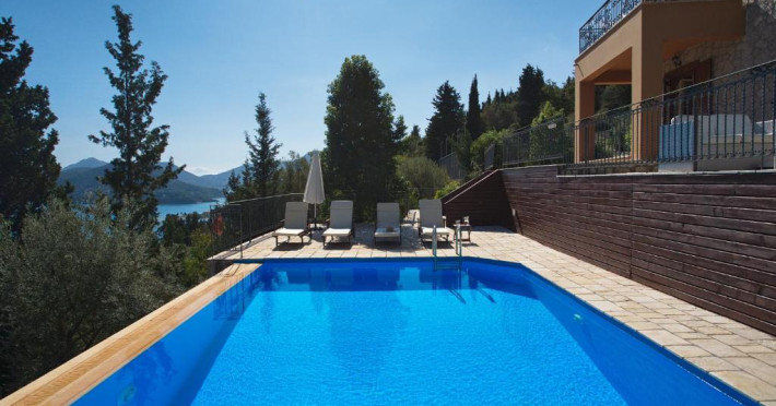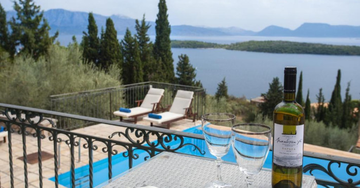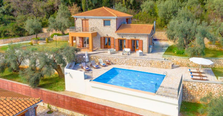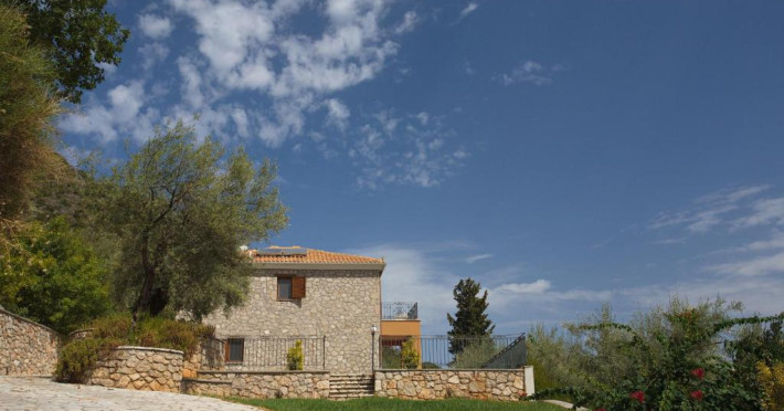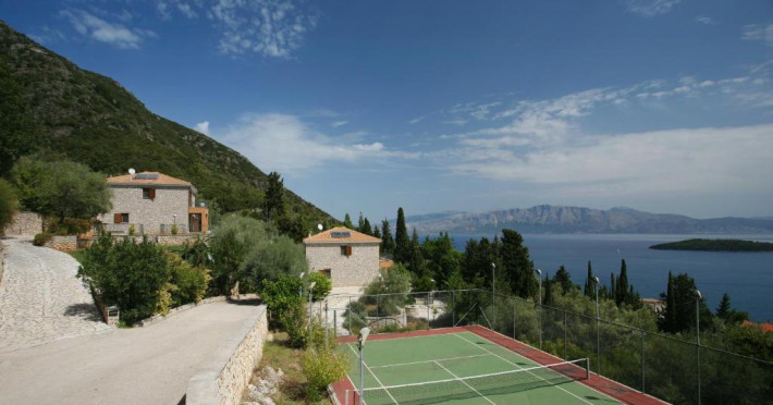 This luxury stone villa is graciously perched on a wonderful uphill location just a few kilometers away from the sunny beaches of the east coast of Lefkada island, in Nidri. It belongs to a complex of two twin, totally independent villas and combines traditional elements with a modern design, providing luxury, romance and feelings of homelike hospitality. It features an outdoor private pool on a large terrace with sunbeds and umbrellas offering relaxable moments. A special feature is the sea-view tennis court suited in the country yard with the exclusive use of guests, so you can enjoy a game or two in the early morning sun before of the heat of the day.