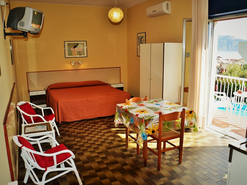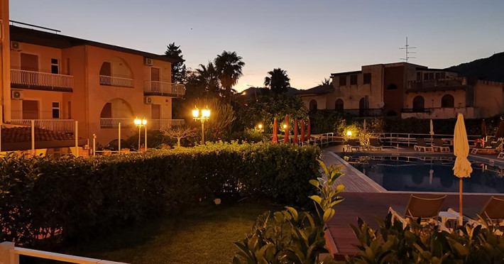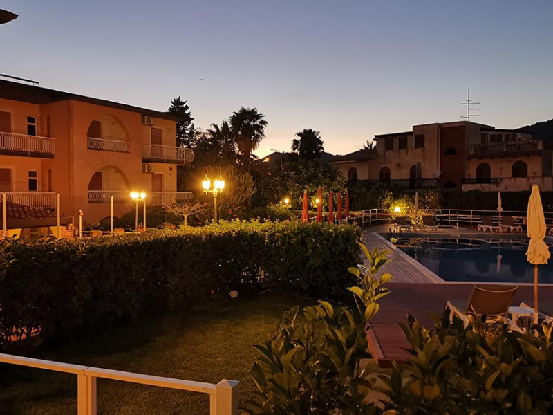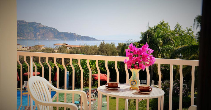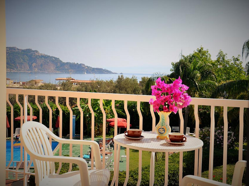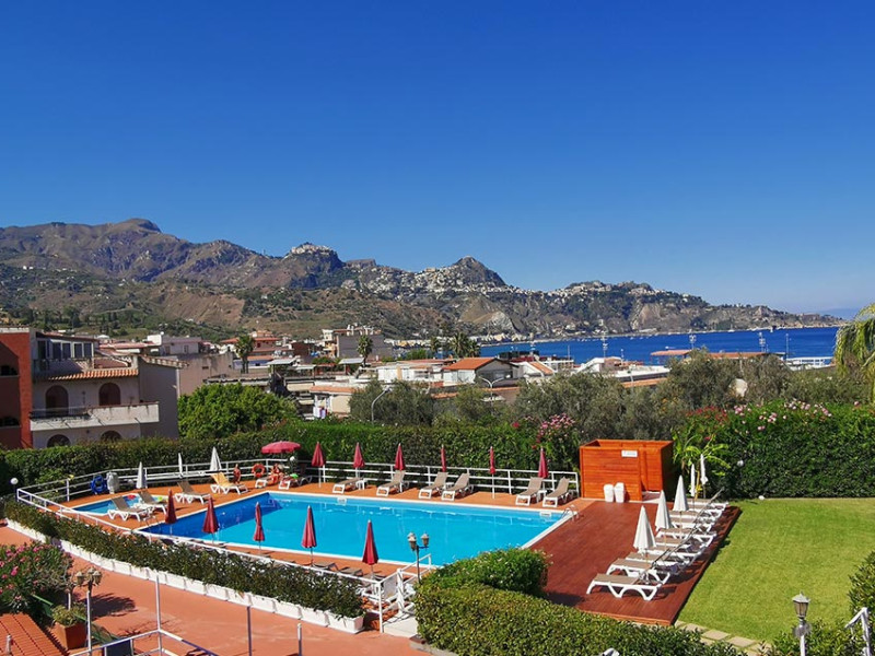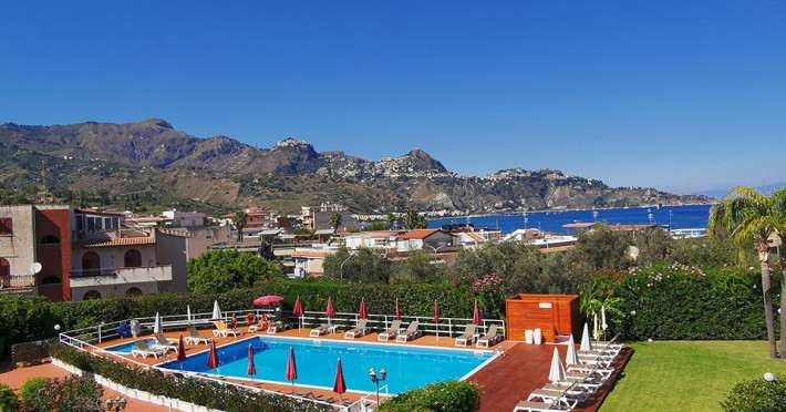 - Villa Giardini is surrounded by a green garden with swimming pool overlooking Naxos Bay and Taormina up the hill.