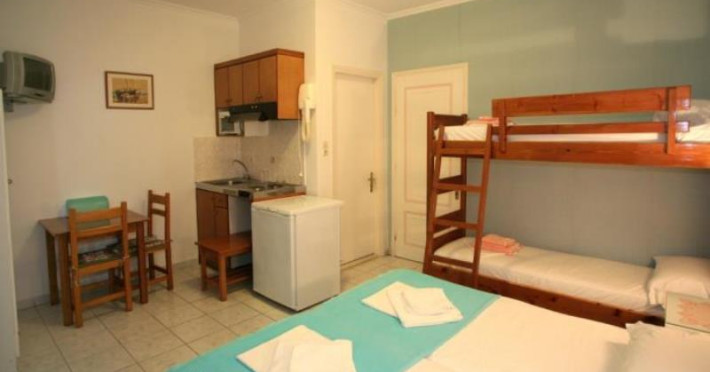 Studiourile renovate recent sunt dotate cu A/C, TV prin satelit, grup sanitar propiu, chicineta complet utilata, frigider si uscator de par. Balcoanele acestora au masa si scaune, oferind vedere la gradina.