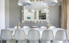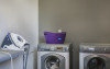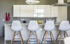 The very modern, all-white kitchen is a cook’s dream, with sleek, handless cabinetry providing acres of storage space and a fantastic island unit housing the sink and hob that doubles as a breakfast bar. It’s a very sociable design, allowing you and your fellow chefs, or even those who prefer a hands-off role, to spend good times together over the food preparation. A further dining table is also positioned by the window, offering alternative seating that could come in handy if you’re serving meals for little ones.