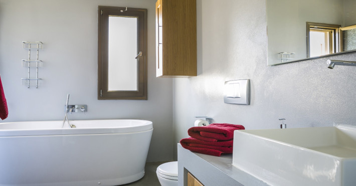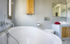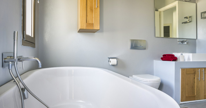 The handsome bedrooms are tastefully decorated with well-built, stylish furniture and clever little touches that demonstrate the designer’s great attention to detail. The two main bedrooms each have an en suite wet room with a stylish wash basin, while the other two bedrooms share a luxurious bathroom with a free-standing bathtub.
