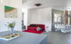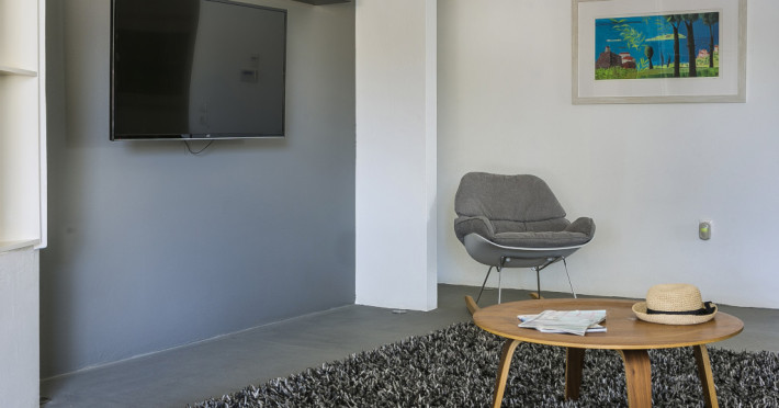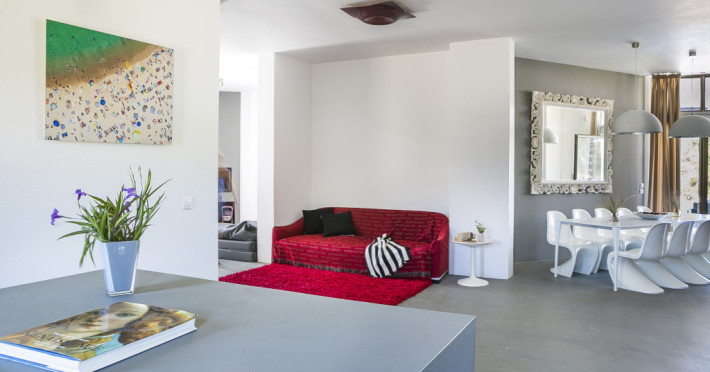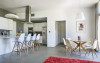 The open plan, single storey design with polished concrete flooring makes for a cool, airy feel throughout, enhanced by floor-to-ceiling windows and patio doors allowing plenty of light to flow through the space. Décor and furnishings are ultra-contemporary yet comfortable, with a semi-industrial twist that’s very much in vogue.