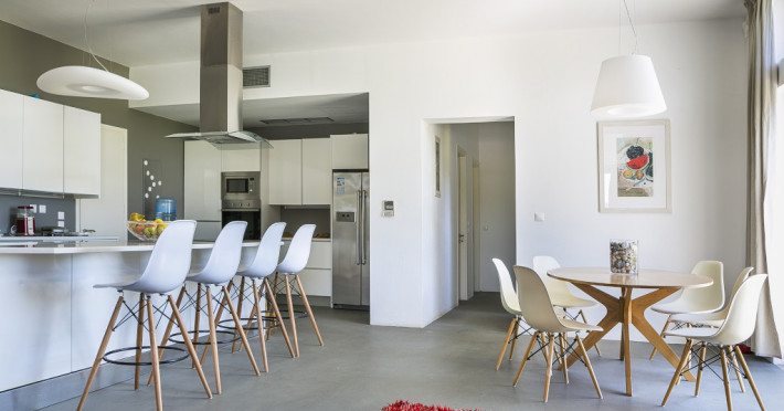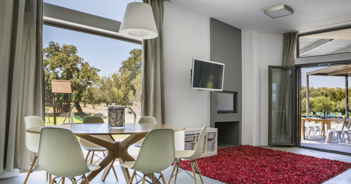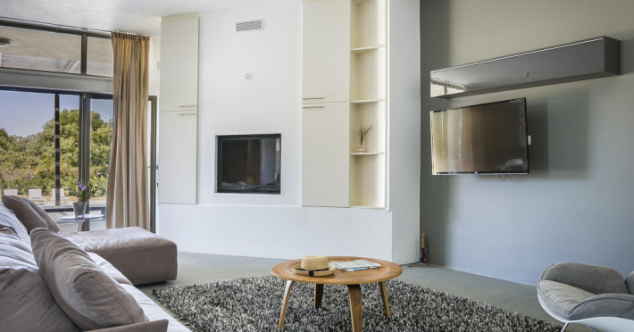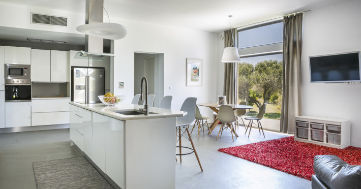Villa Katrin is a 280 m² on 4000 m² surrounding land luxury villa which sleeps up to 8. It is an astounding, newly built property and is architecturally designed with stylish family living in mind and to take full advantage of Kefalonia’s wonderful climate. It is the only four bedroom single story luxury villa in Kefalonia contributing to its child and handicap friendly perks. Generous in size and located in a delightful rural setting at the foot of the historic village of Svoronata, this four-bedroom property offers all you could wish for from a luxury family holiday.