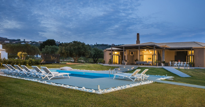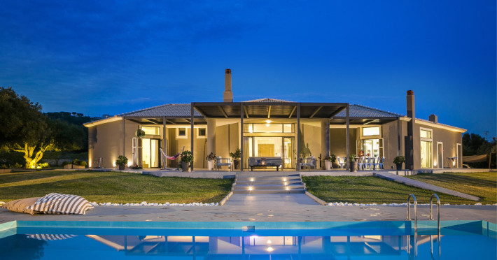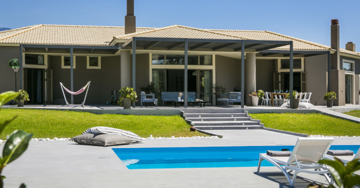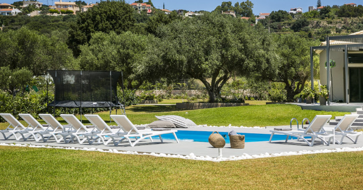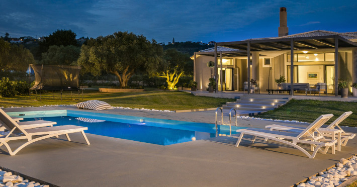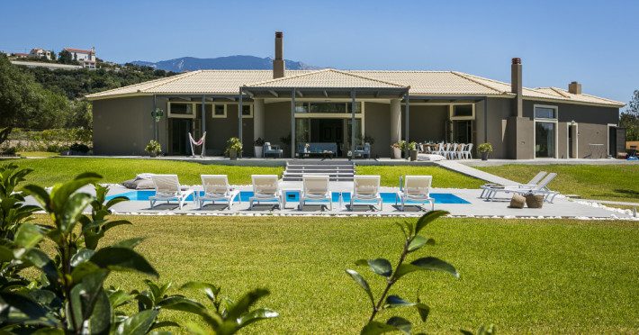 Villa Katrin is an astounding, newly built property and is architecturally designed with stylish family living in mind and to take full advantage of Kefalonia’s wonderful climate. It is the only four bedroom single story luxury villa in Kefalonia contributing to its child and handicap friendly perks. Generous in size and located in a delightful rural setting at the foot of the historic village of Svoronata, this four-bedroom property offers all you could wish for from a luxury family holiday.