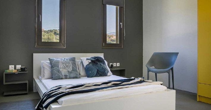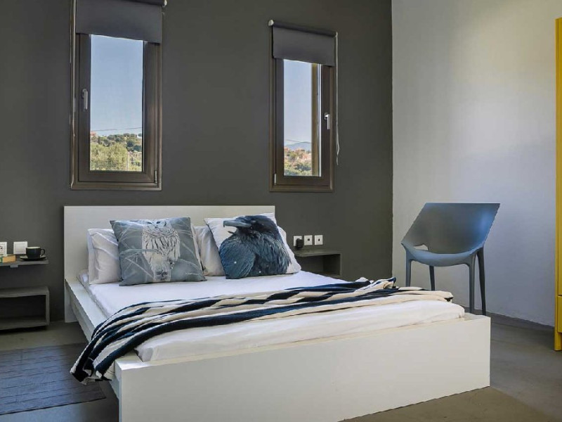 Hotelul ofera aproximativ 60, 66 de camere, suite si maisonette elegante, amenajate cu materiale naturale si culori inspirate din peisajul insulei. Unitatile sunt dotate cu aer conditionat, Wi-Fi, TV prin satelit, minibar, seif si facilitati pentru prepararea cafelei sau ceaiului. Camerele includ baie privata cu halate de baie, papuci si articole de toaleta, iar majoritatea dispun de balcon sau terasa cu vedere catre mare sau gradina.