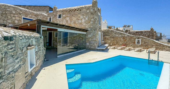 Τhis amazing, recently nenovated villa, situated in Kanalia of Mykonos. The villa comprises of the main house, containing one bedroom with en-suite bathroom, surrounded by a large outdoor space containing, the pool, lounge and dining area and two en-suite autonomous guesthouses.Τhis amazing, recently nenovated villa, situated in Kanalia of Mykonos. The villa comprises of the main house, containing one bedroom with en-suite bathroom, surrounded by a large outdoor space containing, the pool, lounge and dining area and two en-suite autonomous guesthouses.