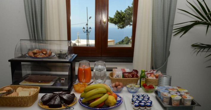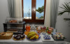 In fiecare dimineată este servit un mic dejun cu preparate dulci și sărate.