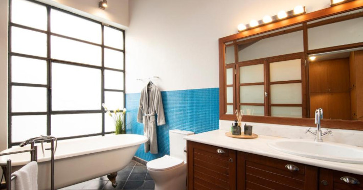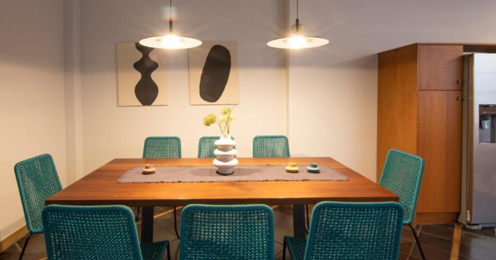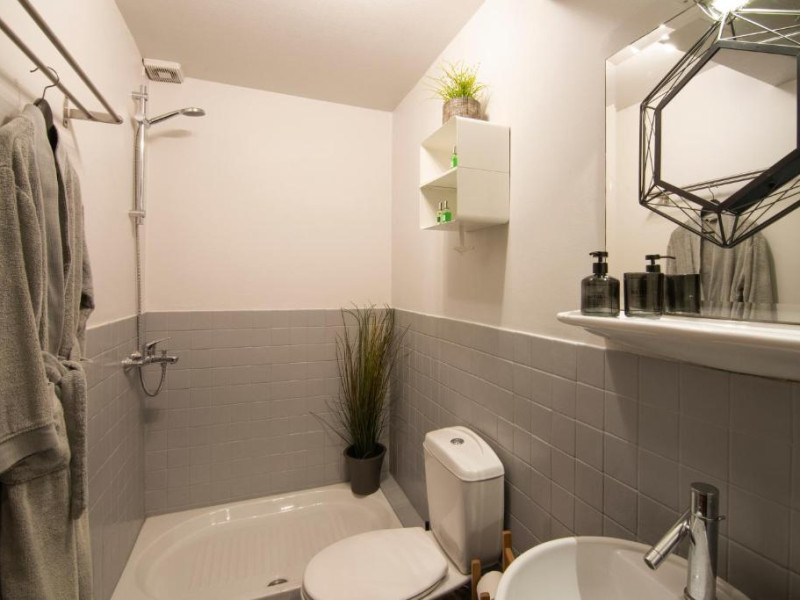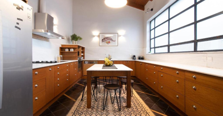 This vilă cu articole aer are 4 dormitoare, un living, o bucătărie complet utilată, cu frigider și cafetieră, precum și 2 băi cu duș și de toaletă gratuită. Baia este dotată cu cadă și un uscător de păr. Există de asemenea prosoape și lenjerie de pat.