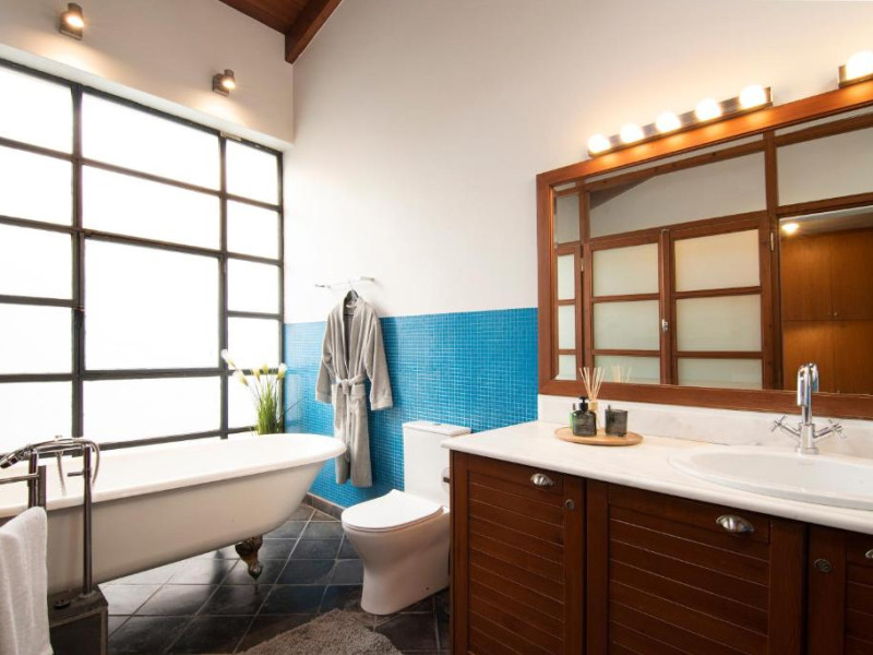 Oaspeții cazați la această vilă au la dispoziție o piscină interioară.