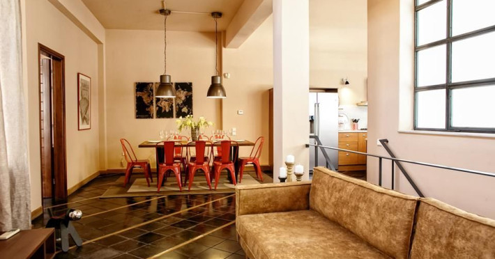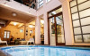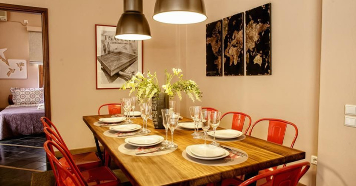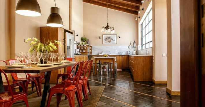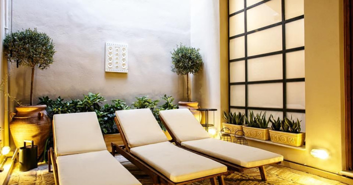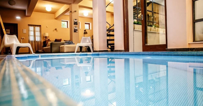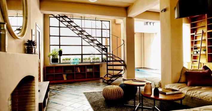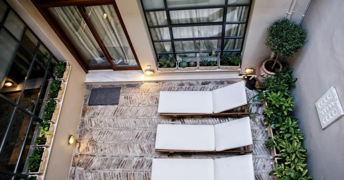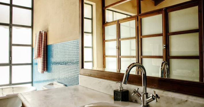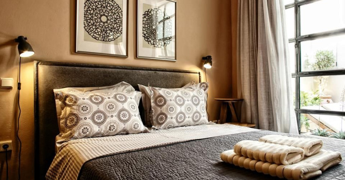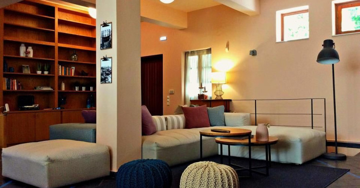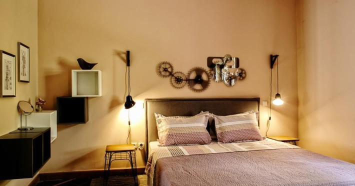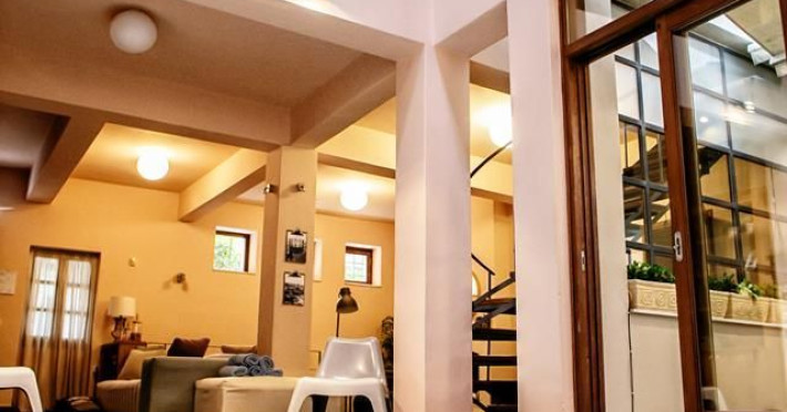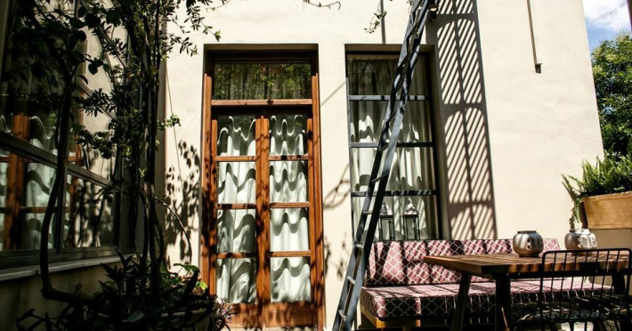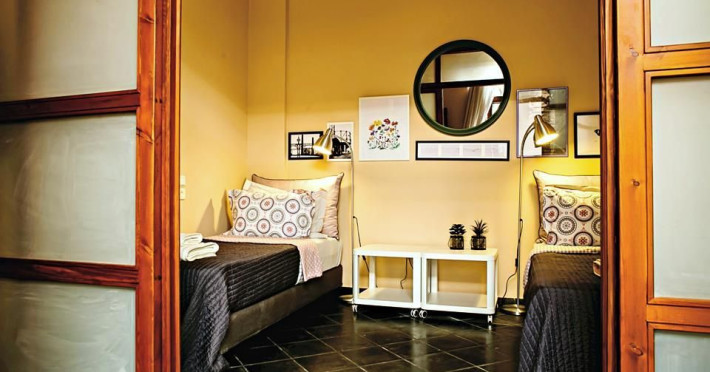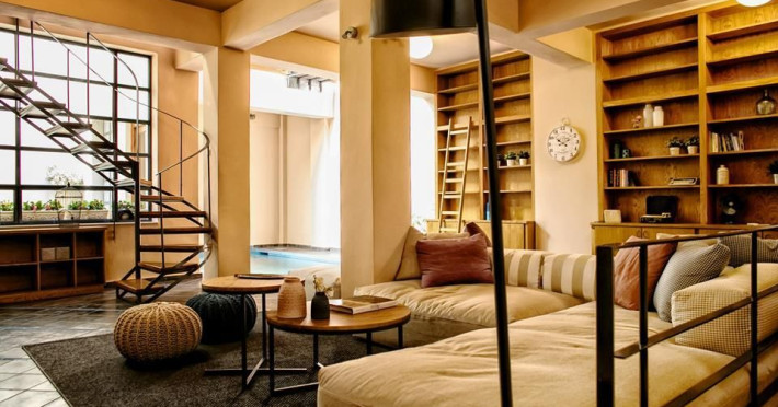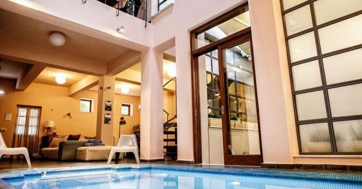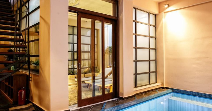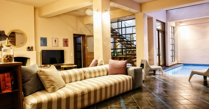 Villa Meliti is a unique down-town property in terms of style and layout, perfect for families or groups of friends, looking for relaxation and recreation. Located in the famous Keramikos area and in close proximity to Athens city center, Villa Meliti offers all the ingredients of the recipe for fun and good times! Ideal for leisure, sight-seeing and shoping Villa Meliti is situated in a quiet street but just a heartbeat away from the Metro, the market, archaeological sites, and dozens of restaurants & bars.  Villa Meliti is the ultimate destination and will definetely make your stay in Athens memorable. Villa Melitis 320 sqm structure is complex and unique and can accomodate up to 8 guests. This house features, large open communal areas, a fully equipped kitchen with large windows overlooking the underlying patio next to the indoor swimming pool. The kitchen area communicates with a spacious dining-living room and has access to the veranda. Stepping out from the living room you will find a wonderful little terrace with one more table surrounded by Mediterranean plants and flowers where you can create romantic moments under the stars! The interiors of Villa Meliti are exquisitely designed in the urban-industrial style with wood and metal carefully combined to create a balanced atmosphere of cosiness and simplicity. The decoration features modern and traditional elements, bright colored furnishings and unique hand-made pieces. The comfy couches and beds with soft fabrics and textures create an ambience of leisure. A wide variety of amenities, are making Villa Meliti an ideal choice for families, friends or even companies that wish to socialize while at the same time preserve their privacy when they need to. The guests are bound to gather around the unique , for a down-town Villa indoor pool, and have endless fun moments. Set the table outside, share the food and the heartwarming experience with your loved ones. Or, you can all visit the bar-restaurants close by. Let’s not forget, the buzzing center is just a few meters away, and the night is always young there!